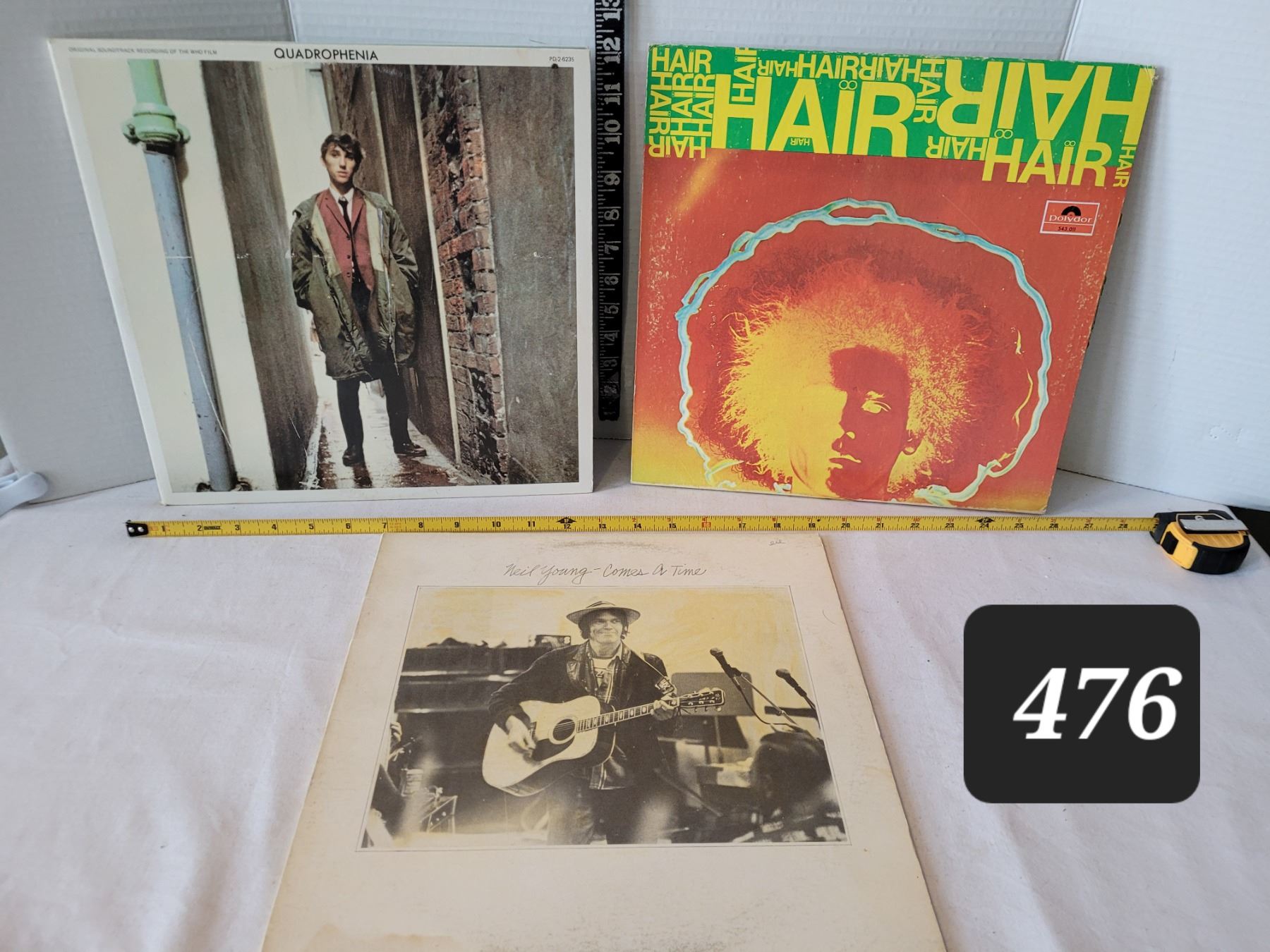 Vtg. LP records. Quadrophenia ( original sound track of the Who film), Hair & Neil Young.