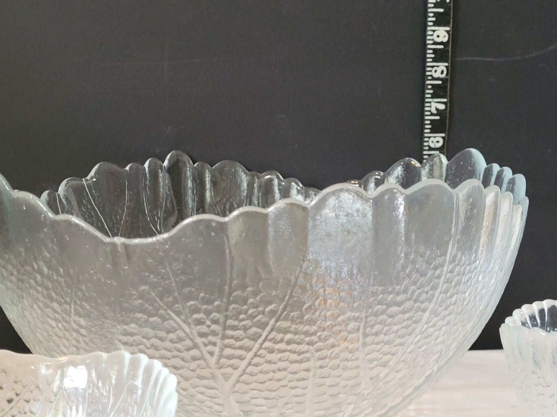 Vtg. Lettuce pattern salad & serving bowls. Vintage silver plated cake/ salad scissors.