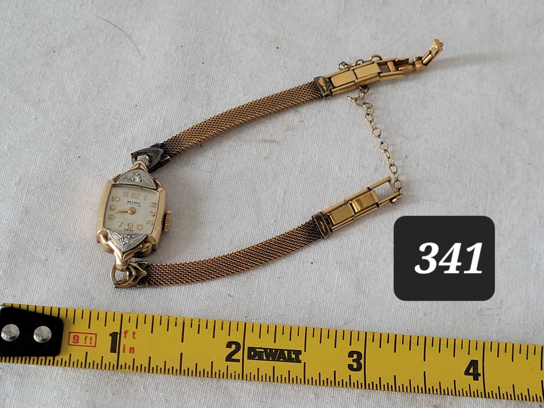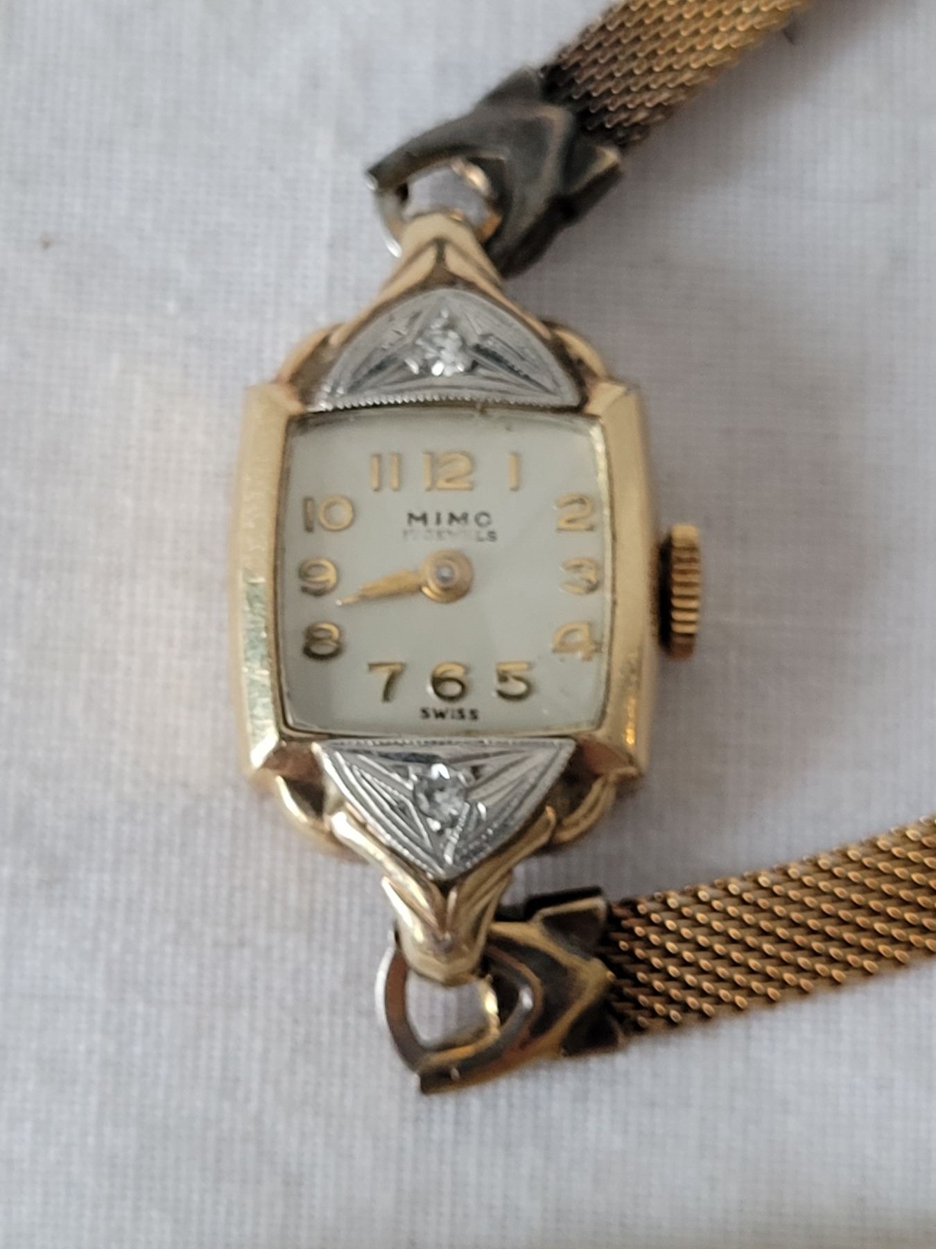 Vtg. Mimo 2 diamond, 17 jewel watch. Gold filled case, Swiss movement, manual wind. Not working
