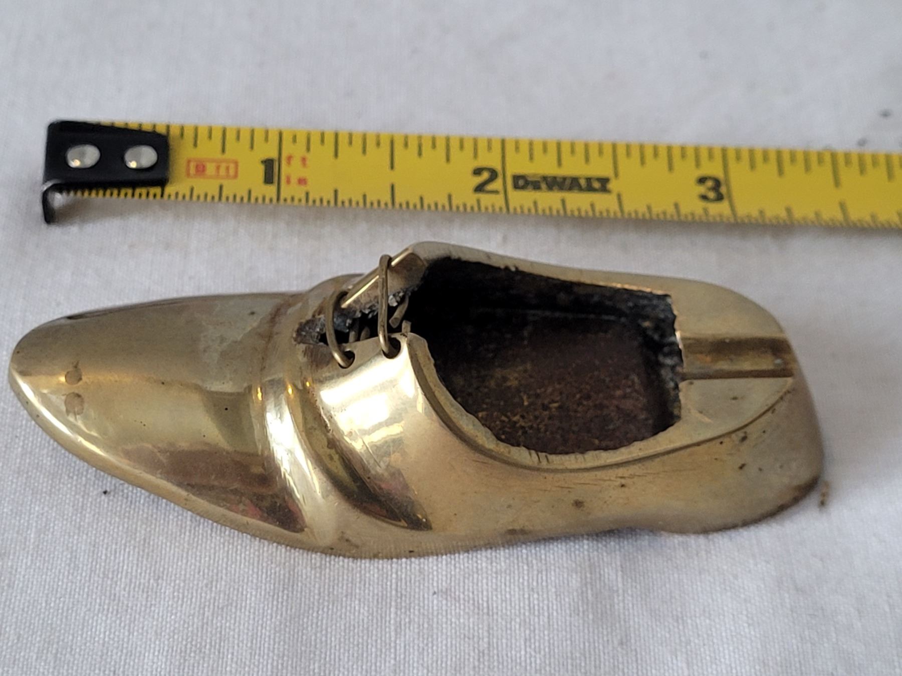 Vtg. Solid small brass shoe ashtray & pocket change dish.