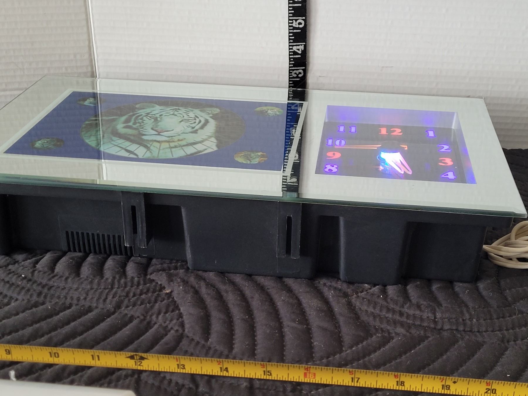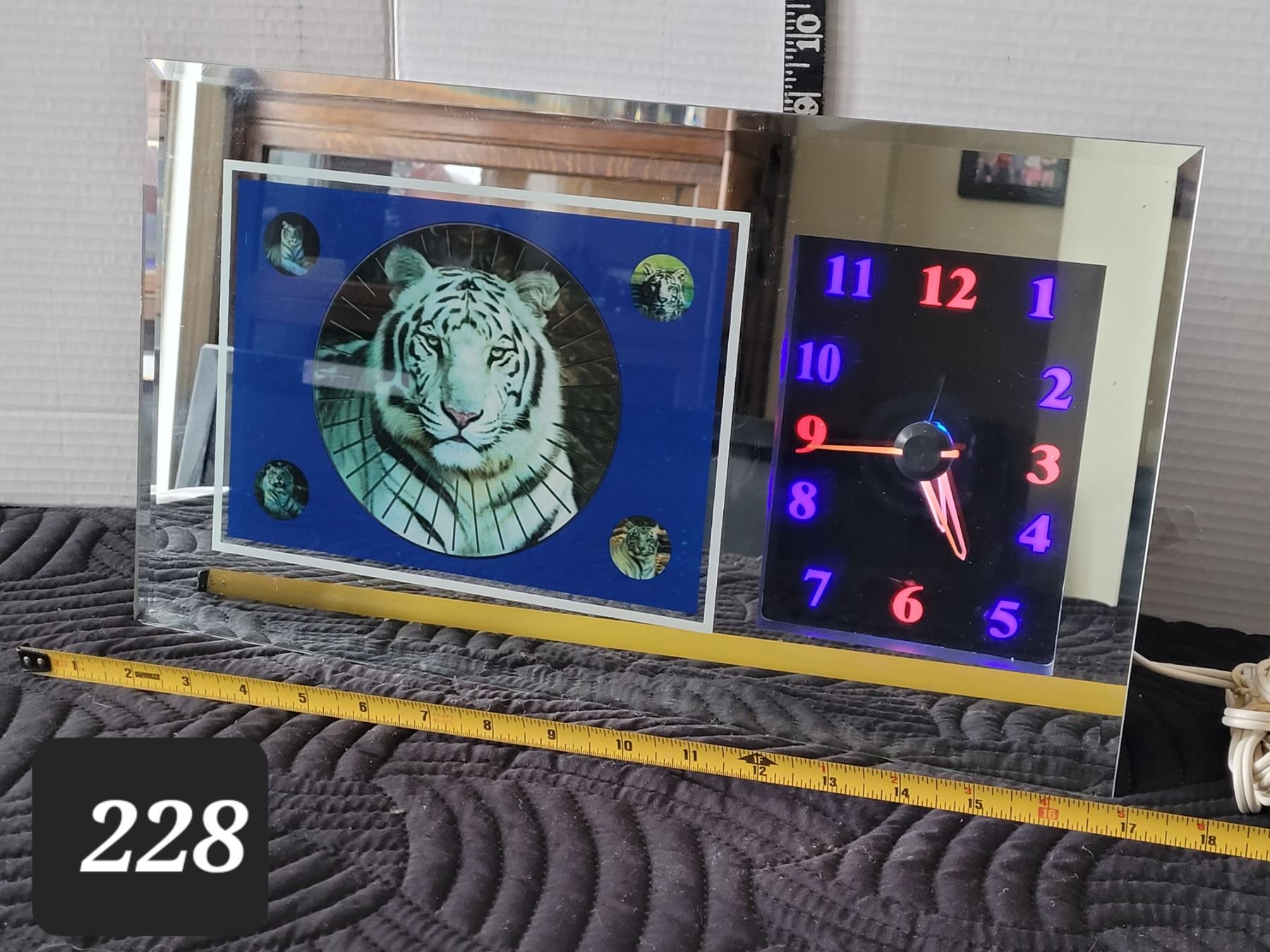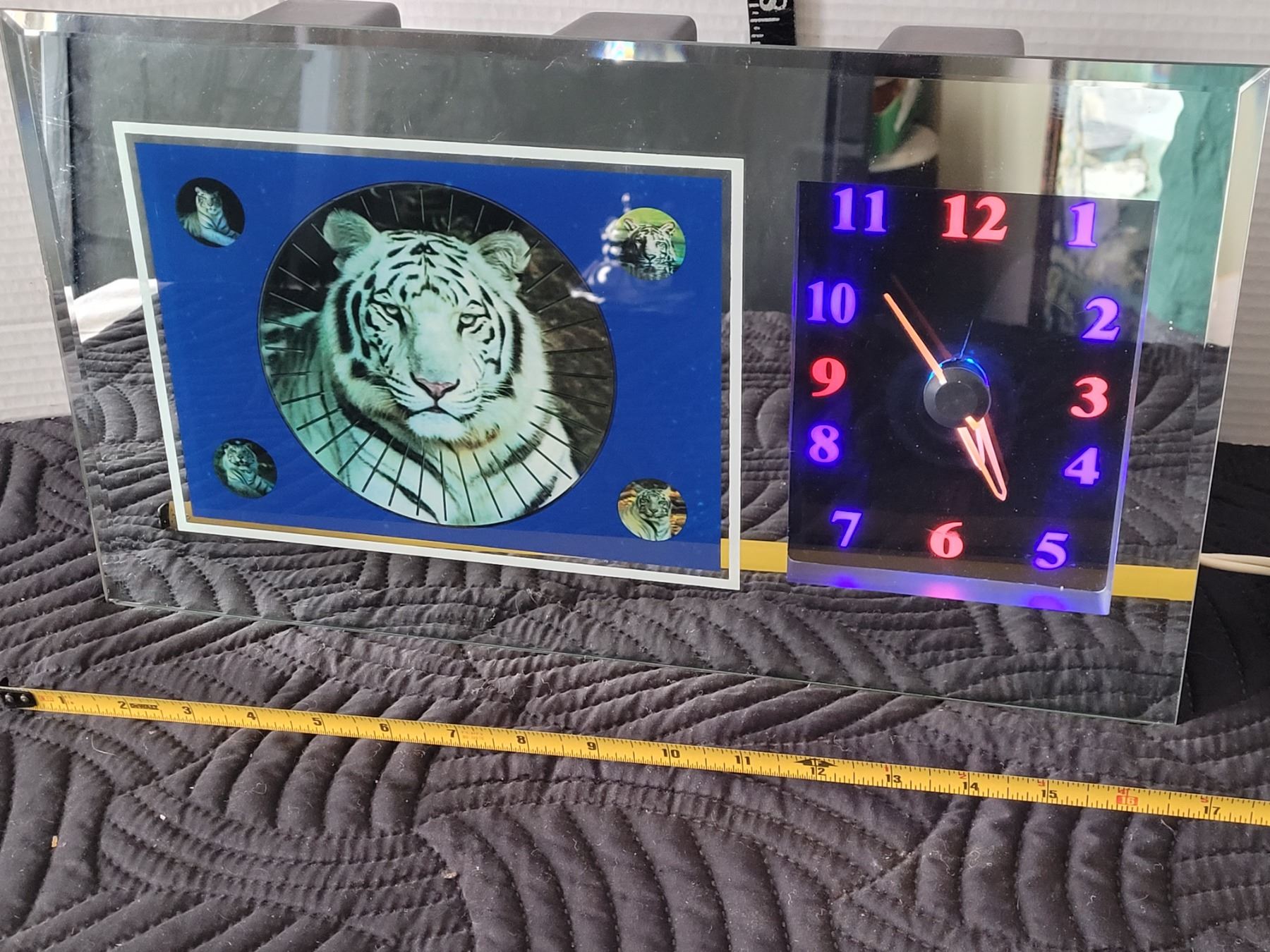Vtg. Tiger motion clock on mirror frame. Working clock, motion needs repair.