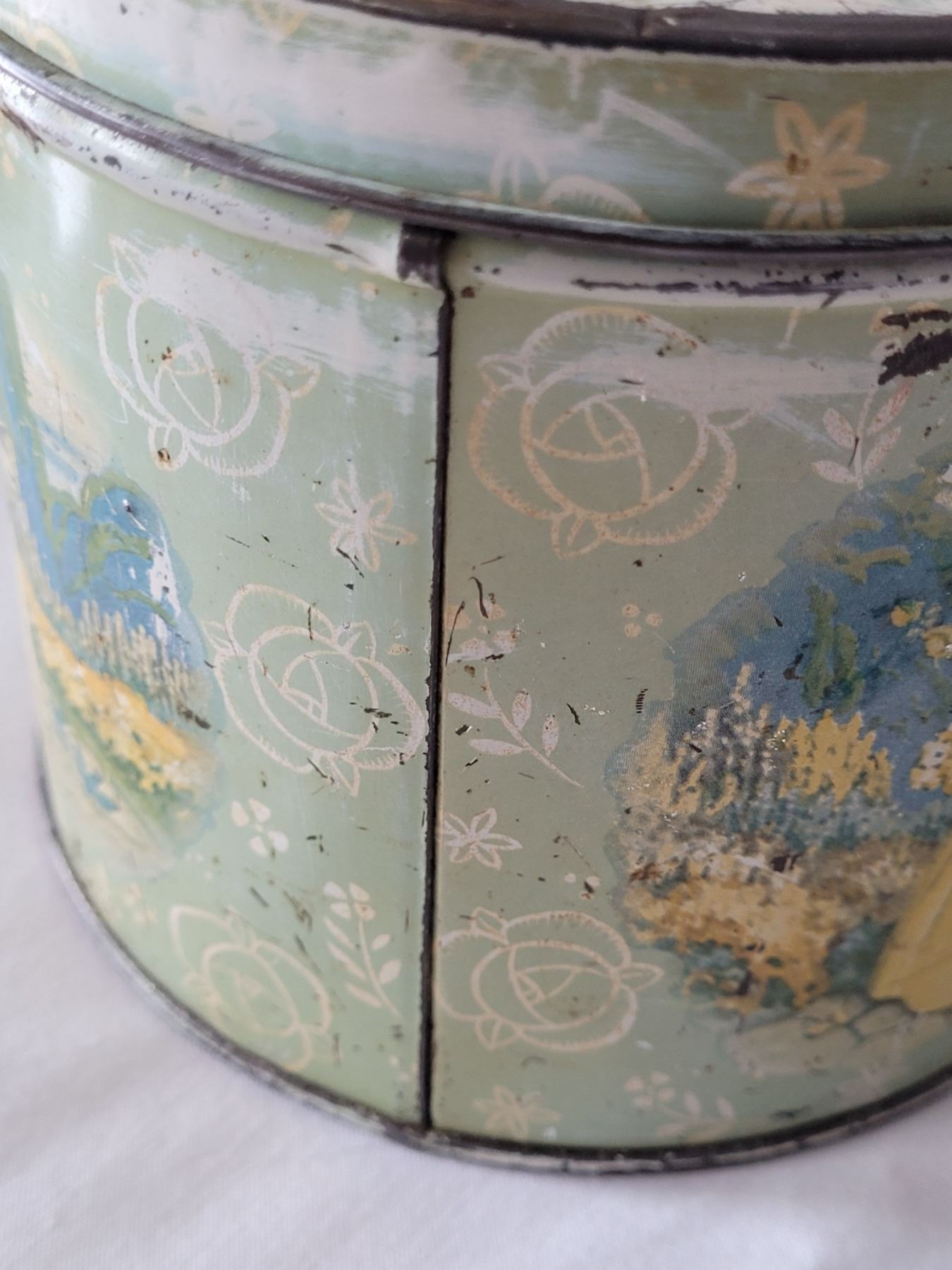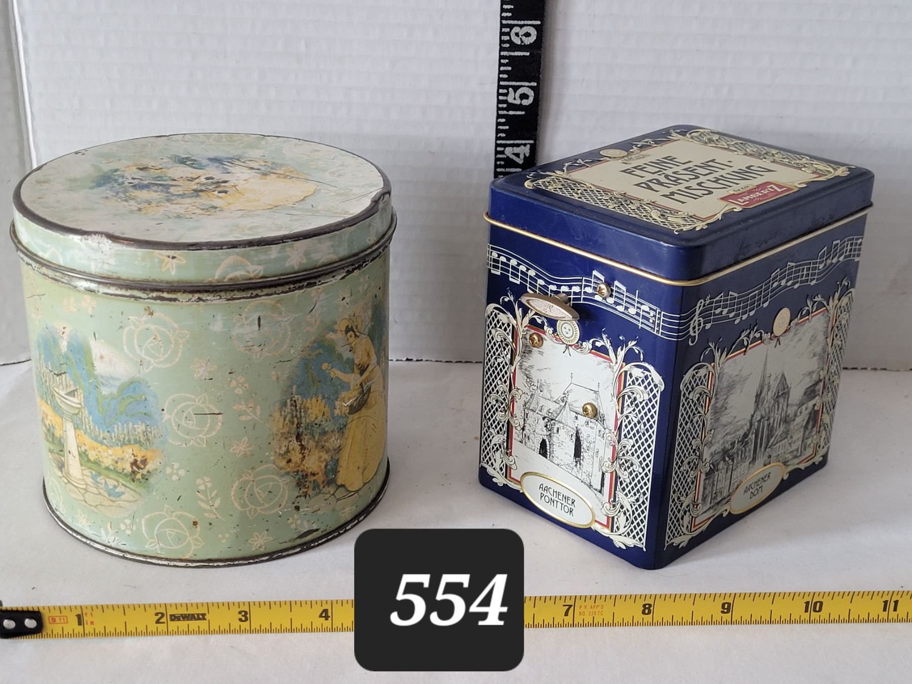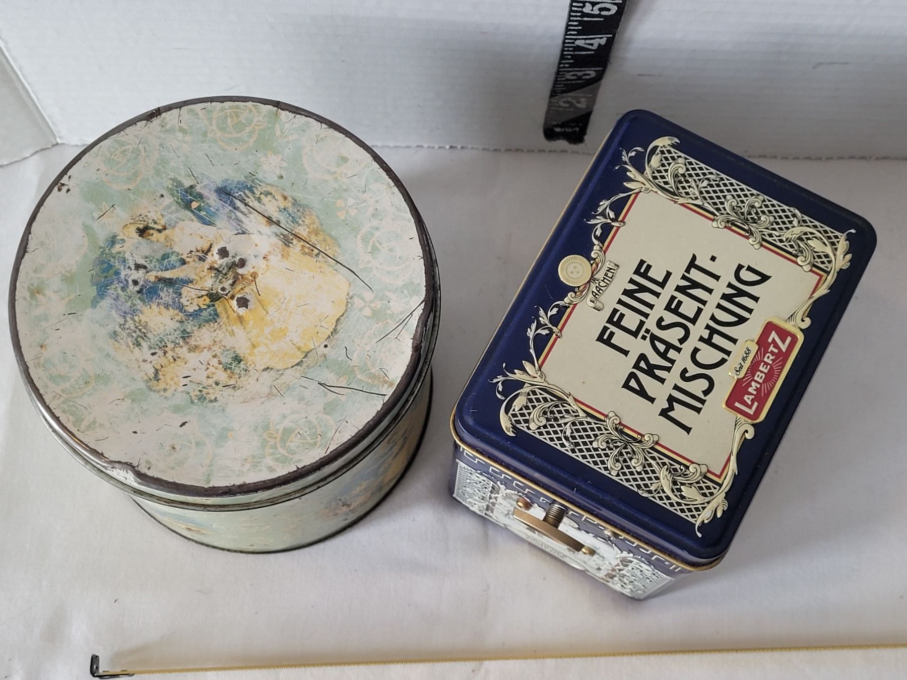 Vtg. Victorian style Lipton Tea tin & Lanbertz German musical cookie tin (Silent Night)