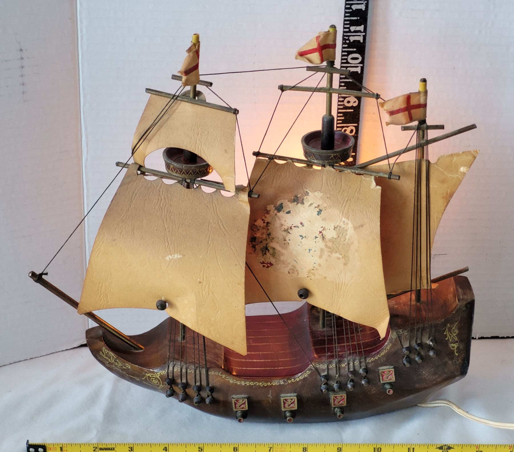Vtg. Wood ship (Mayflower) lamp.working. (Holland)