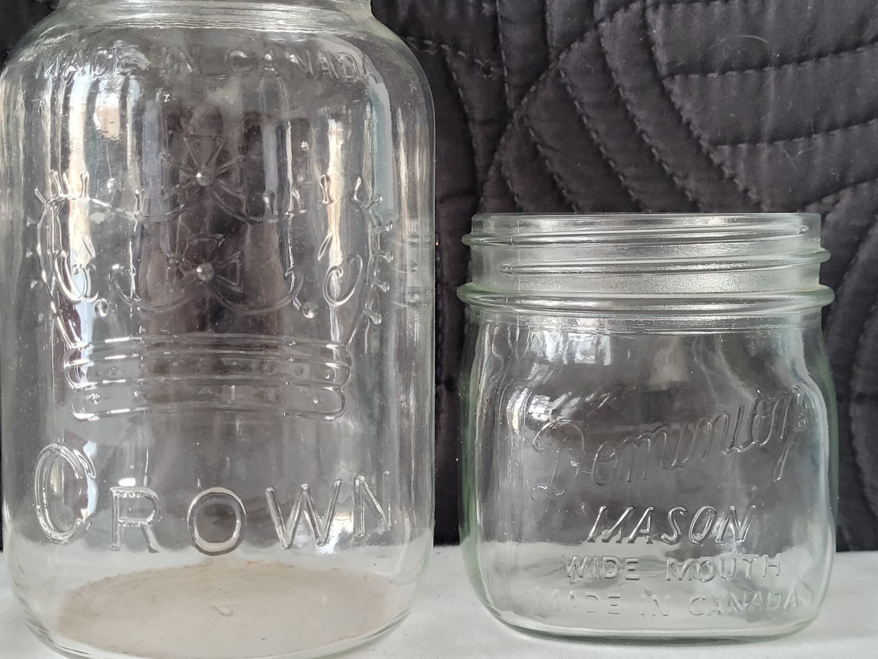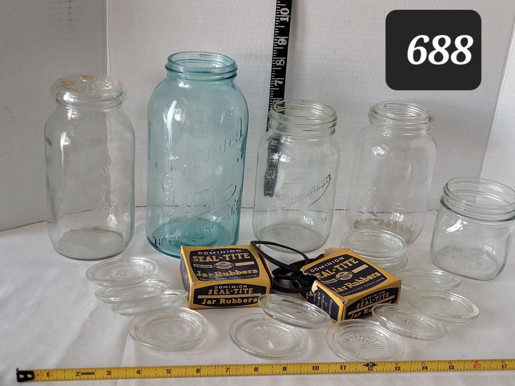 Vtg. canning jars & seals. War grade rubber seals, Crown, Dominion, Consumer, Improved gem & glass lid inserts.