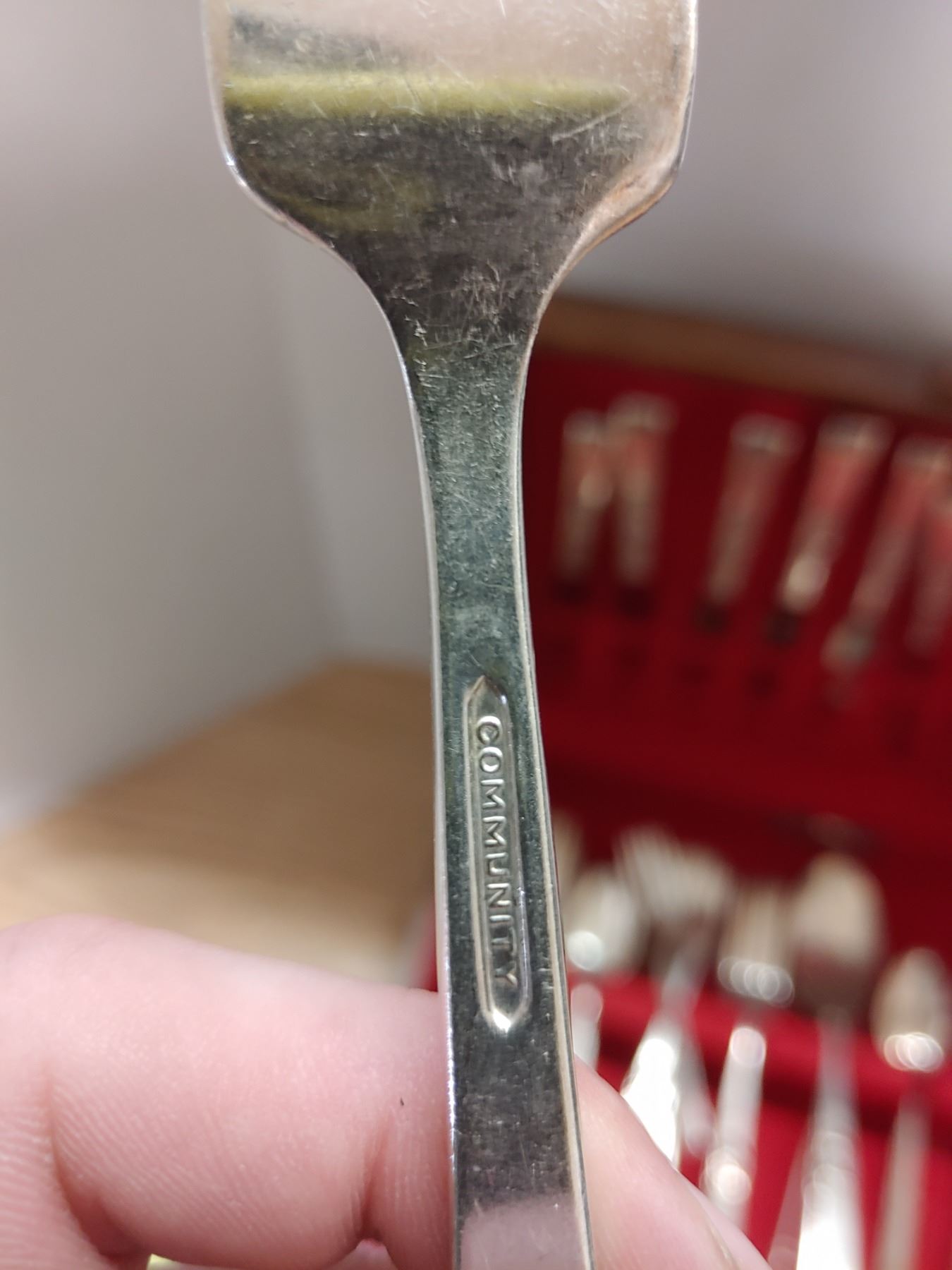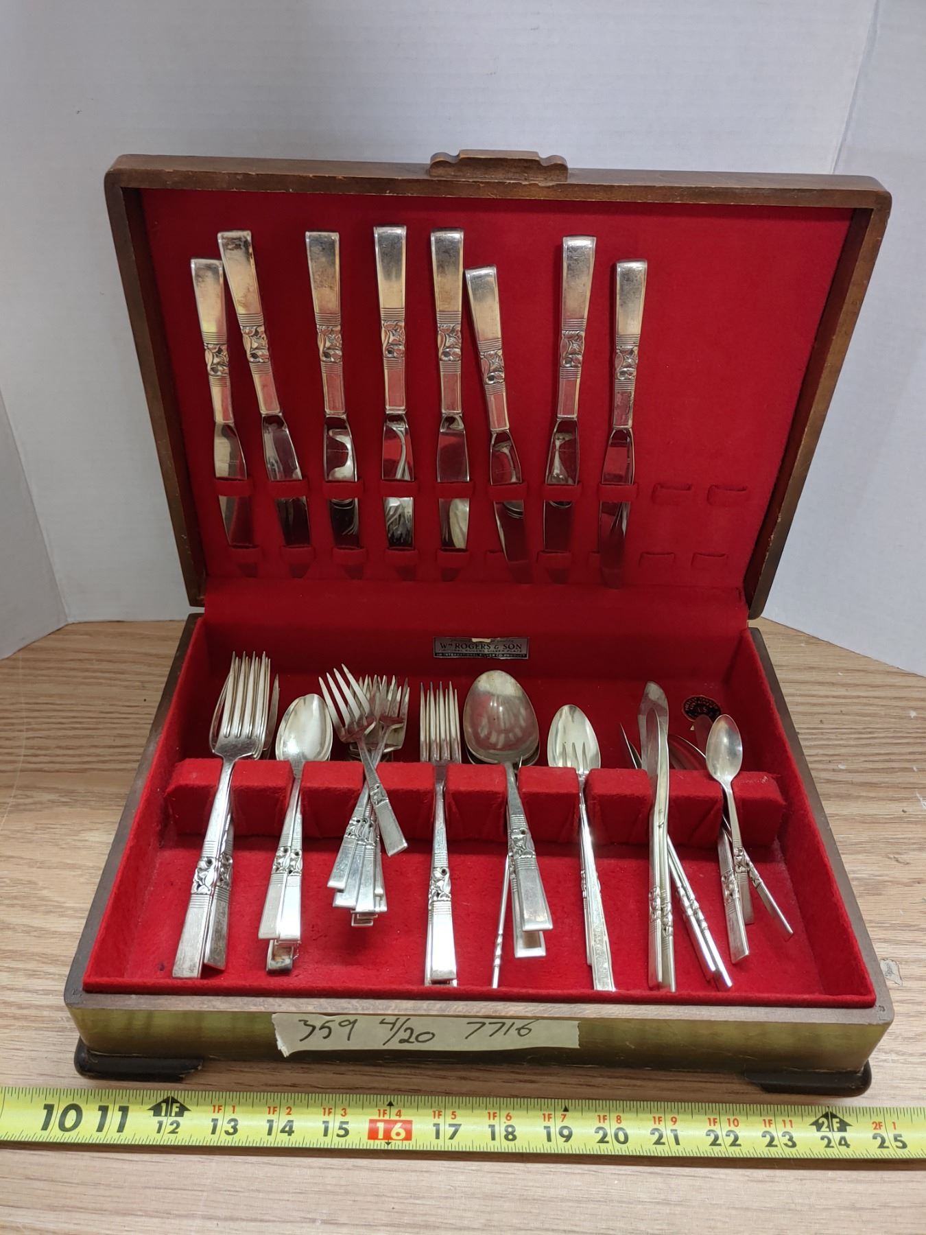 W. M. Rogers & Son Silver Plate Box W/ Community Stainless Utensils
