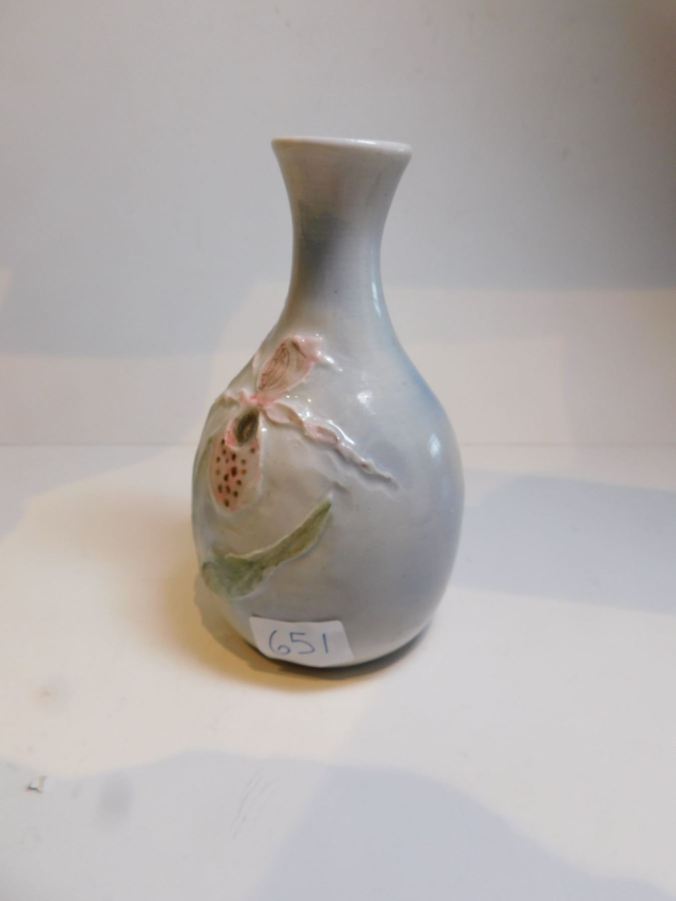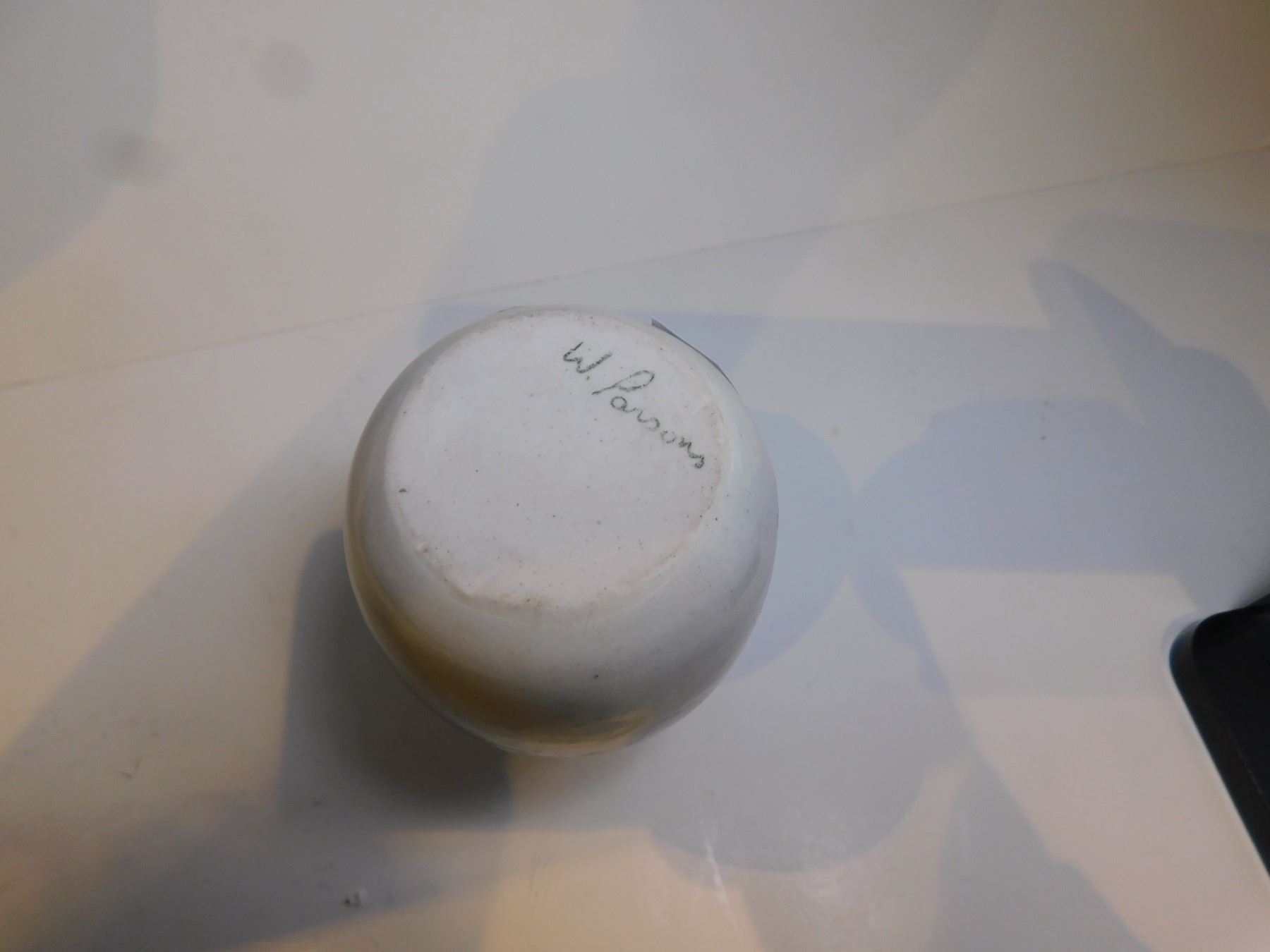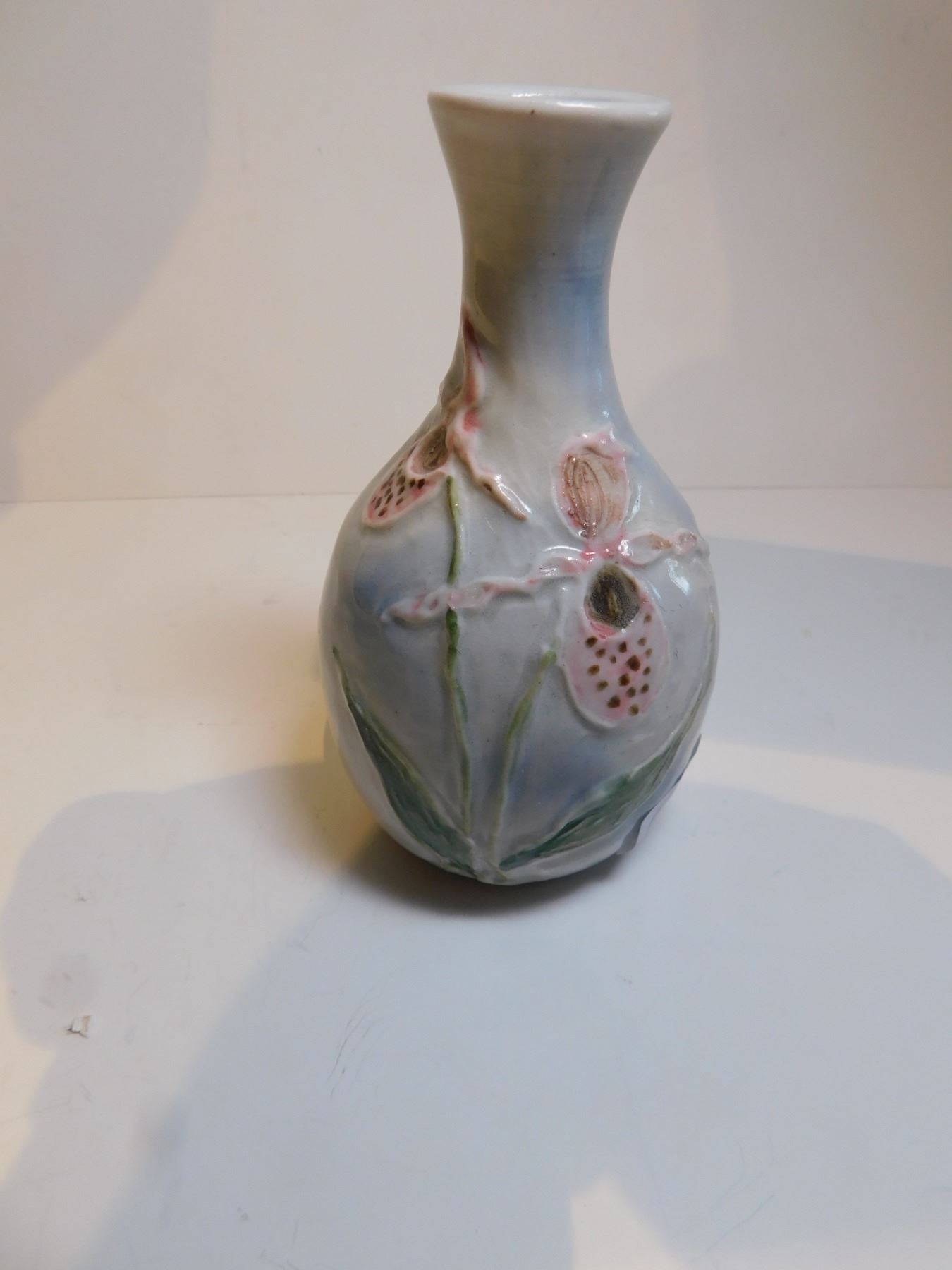 W PARSONS SIGNED VASE, ORCHIDS ABOUT 5” TALL