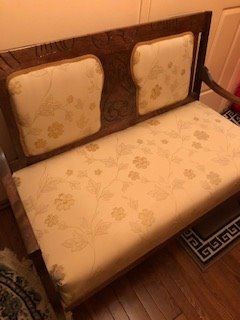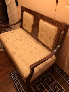 WALNUT UPHOLSTERED SETTEE