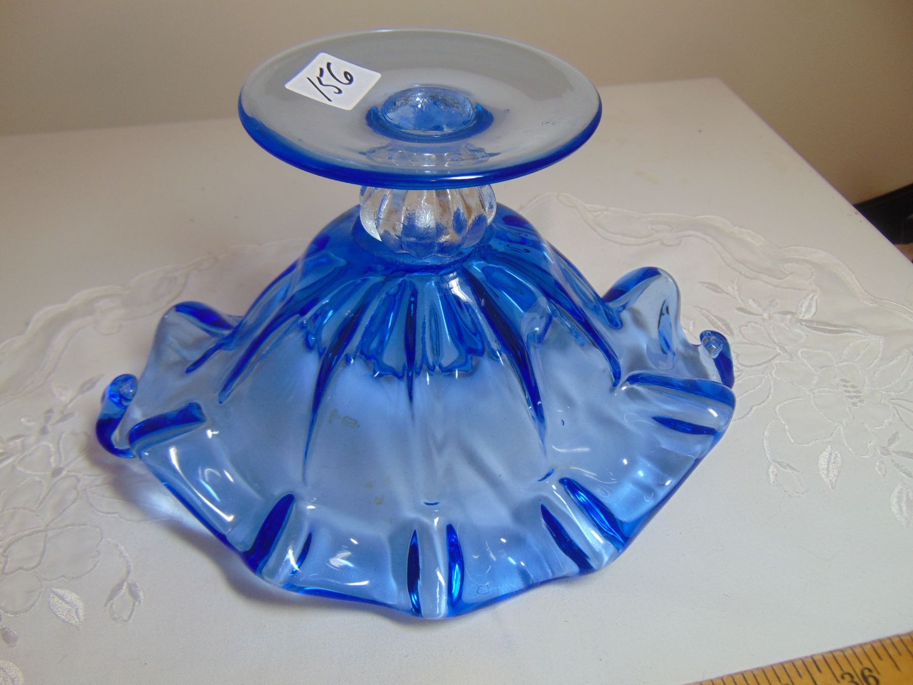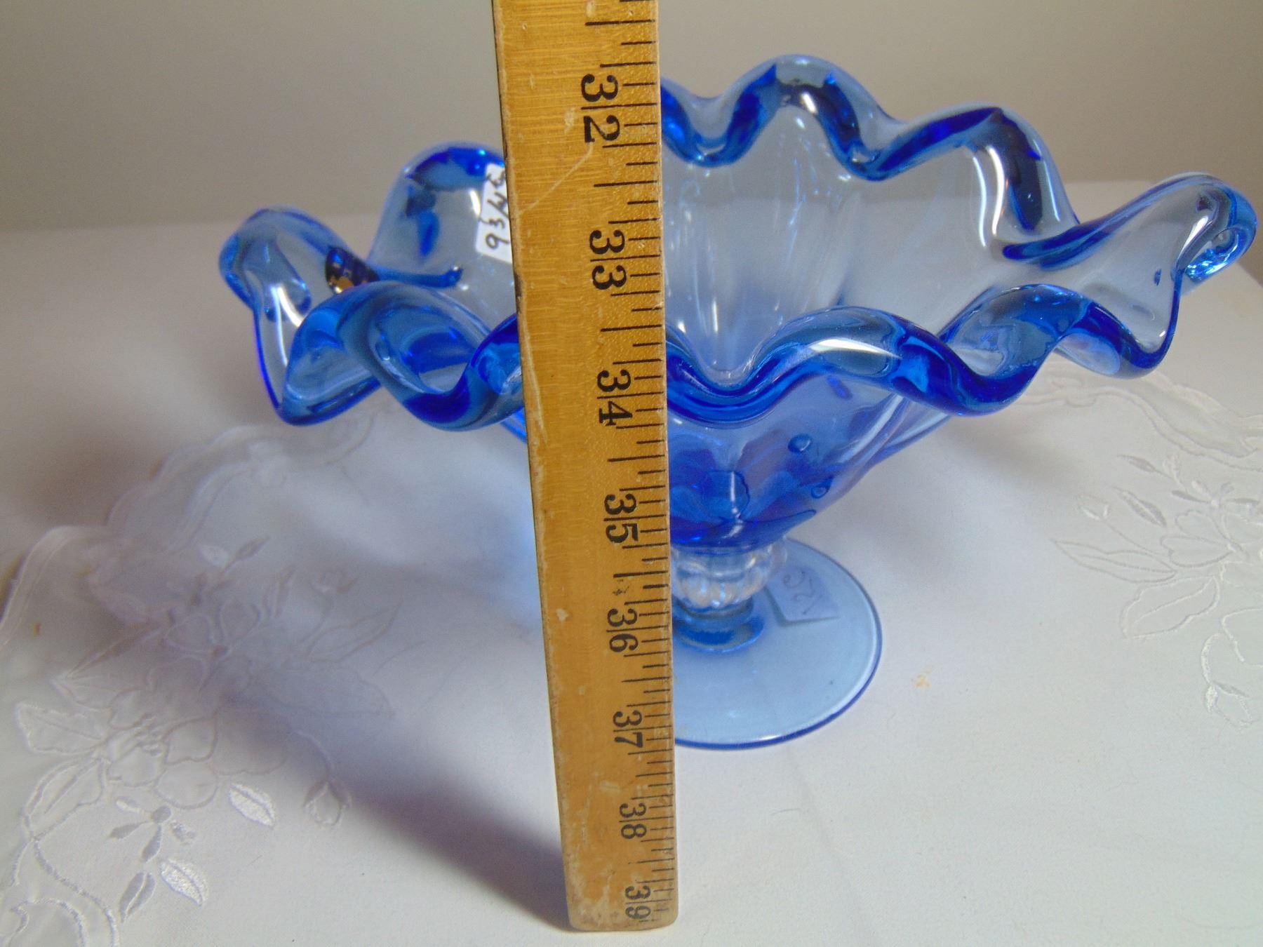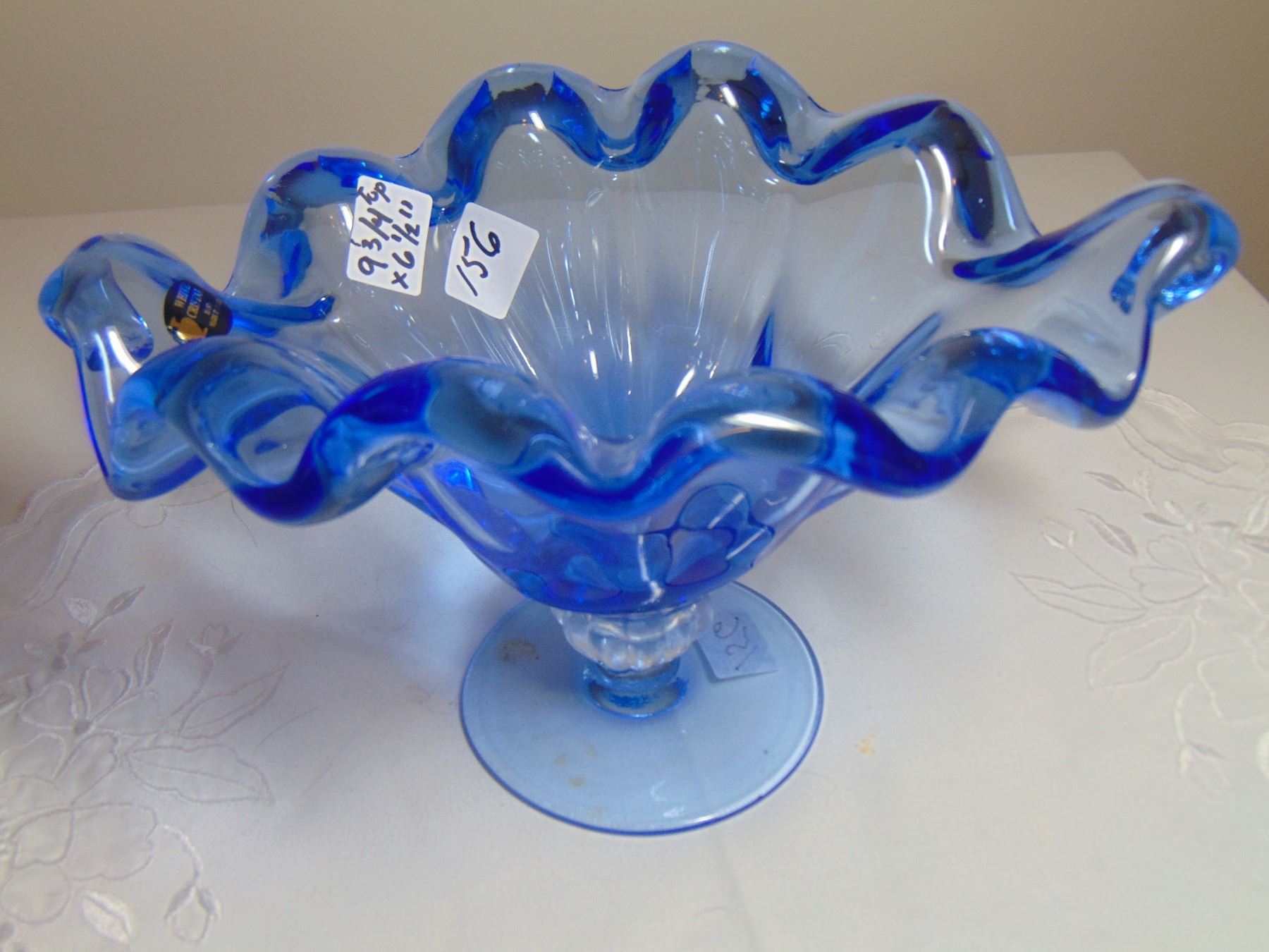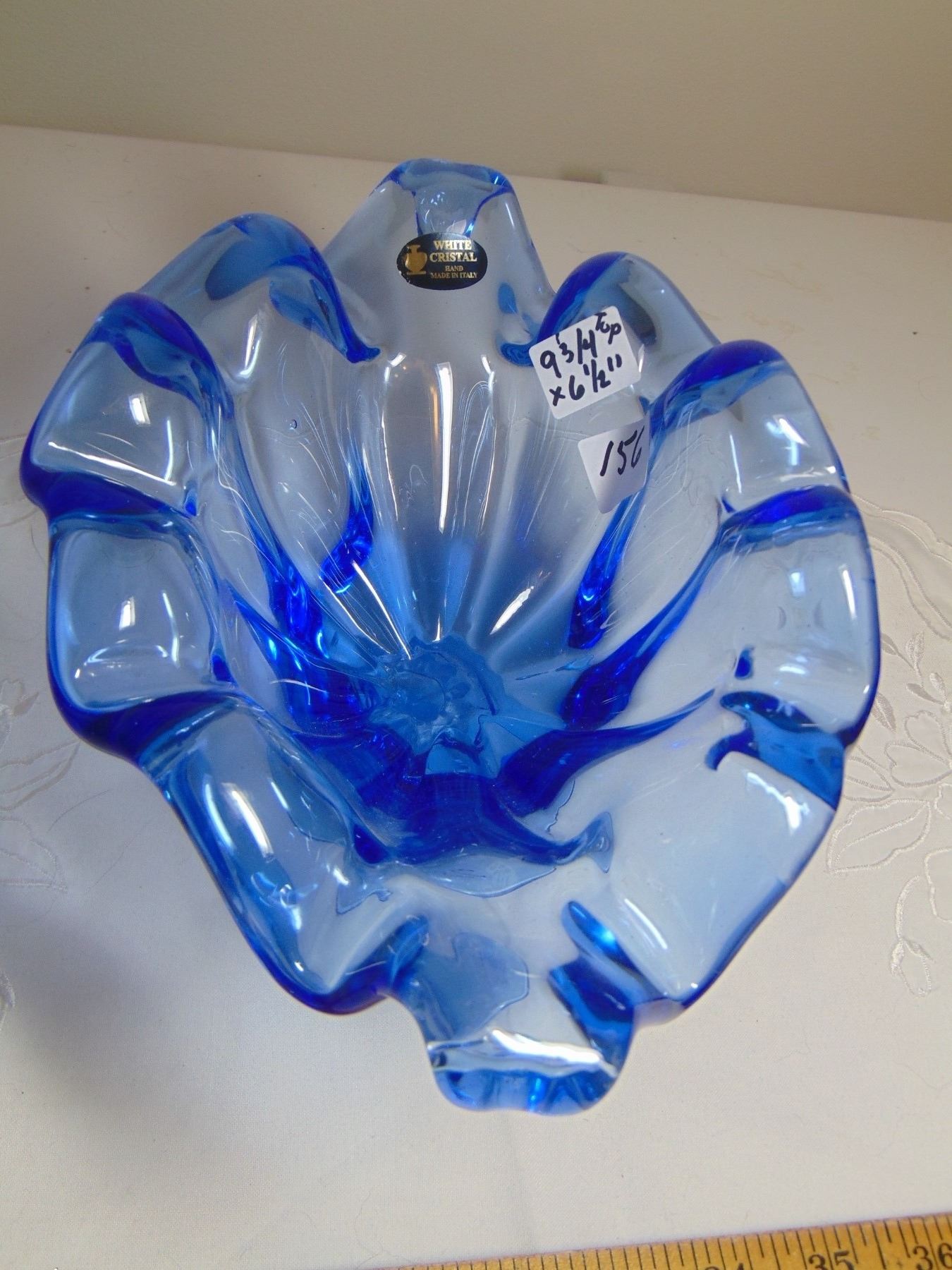 WHITE CRYSTAL BRAND MADE IN ITALY BLUE ART GLASS