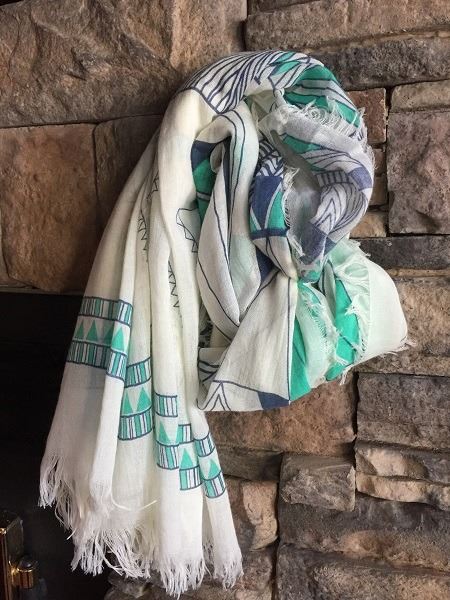 WHITE/MINT/BLUE NAVAHO DESIGN INFINITY SCARF