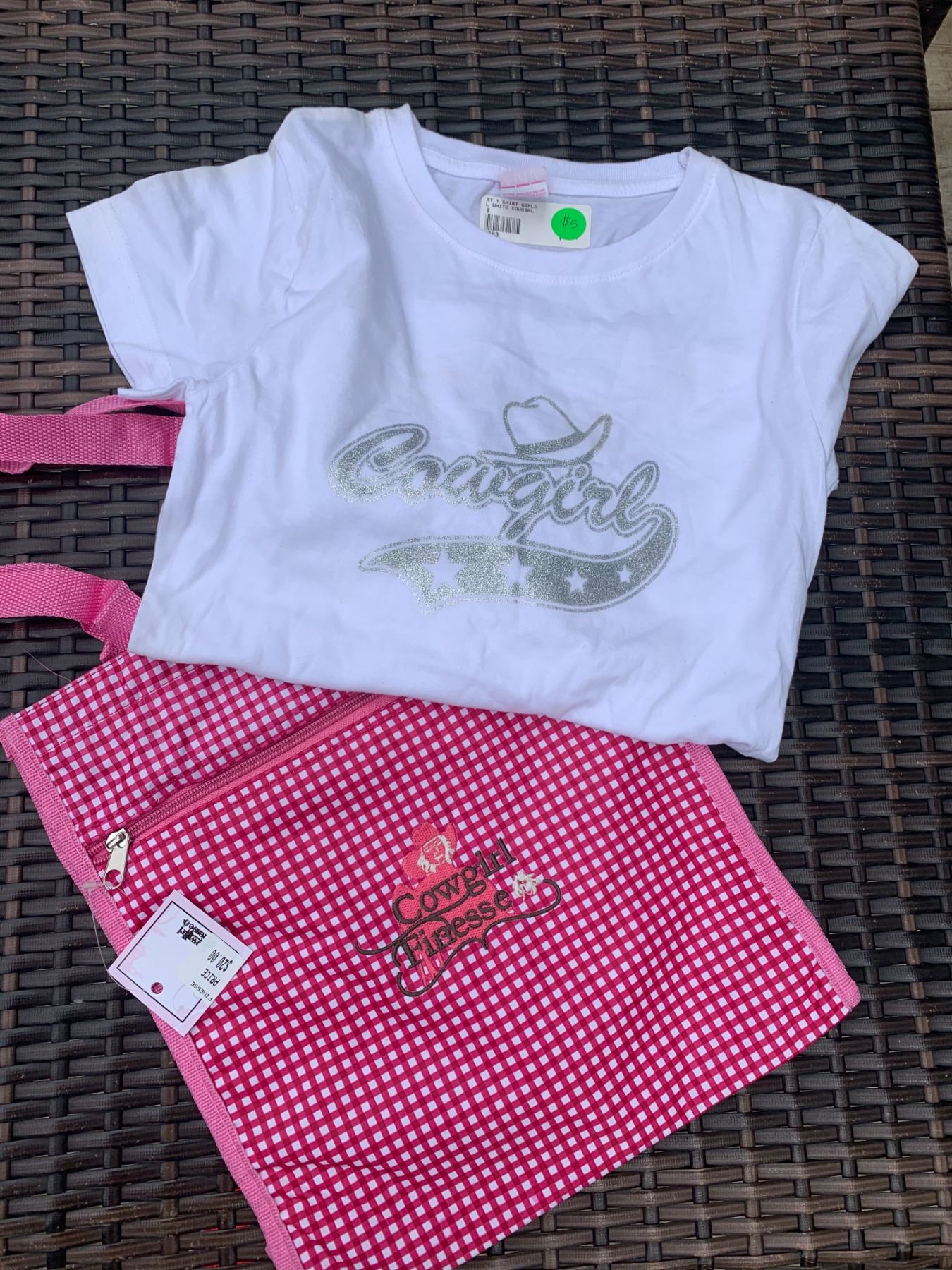 WHITE SILVER COWGIRL LOGO GIRLS TSHIRT SIZE LARGE/COWGIRL FINESSE TOTE BAG!!