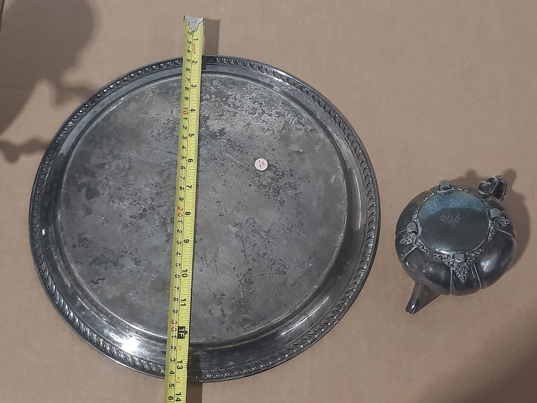 WM Rogers S.P Tea Pot, Creamer and Platter.