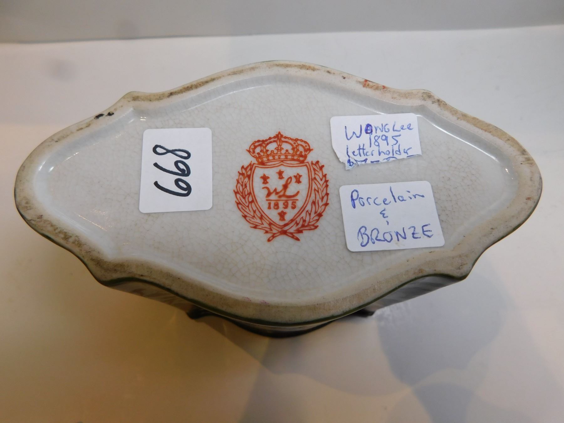 WONG LEE, 1895 PORCELAIN AND BRONZE LETTER HOLDER