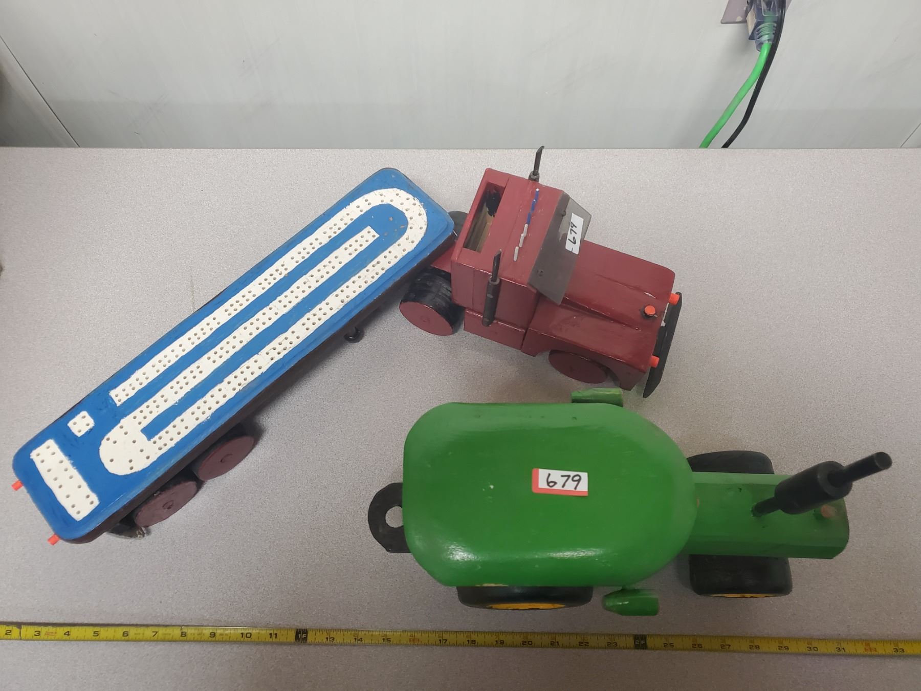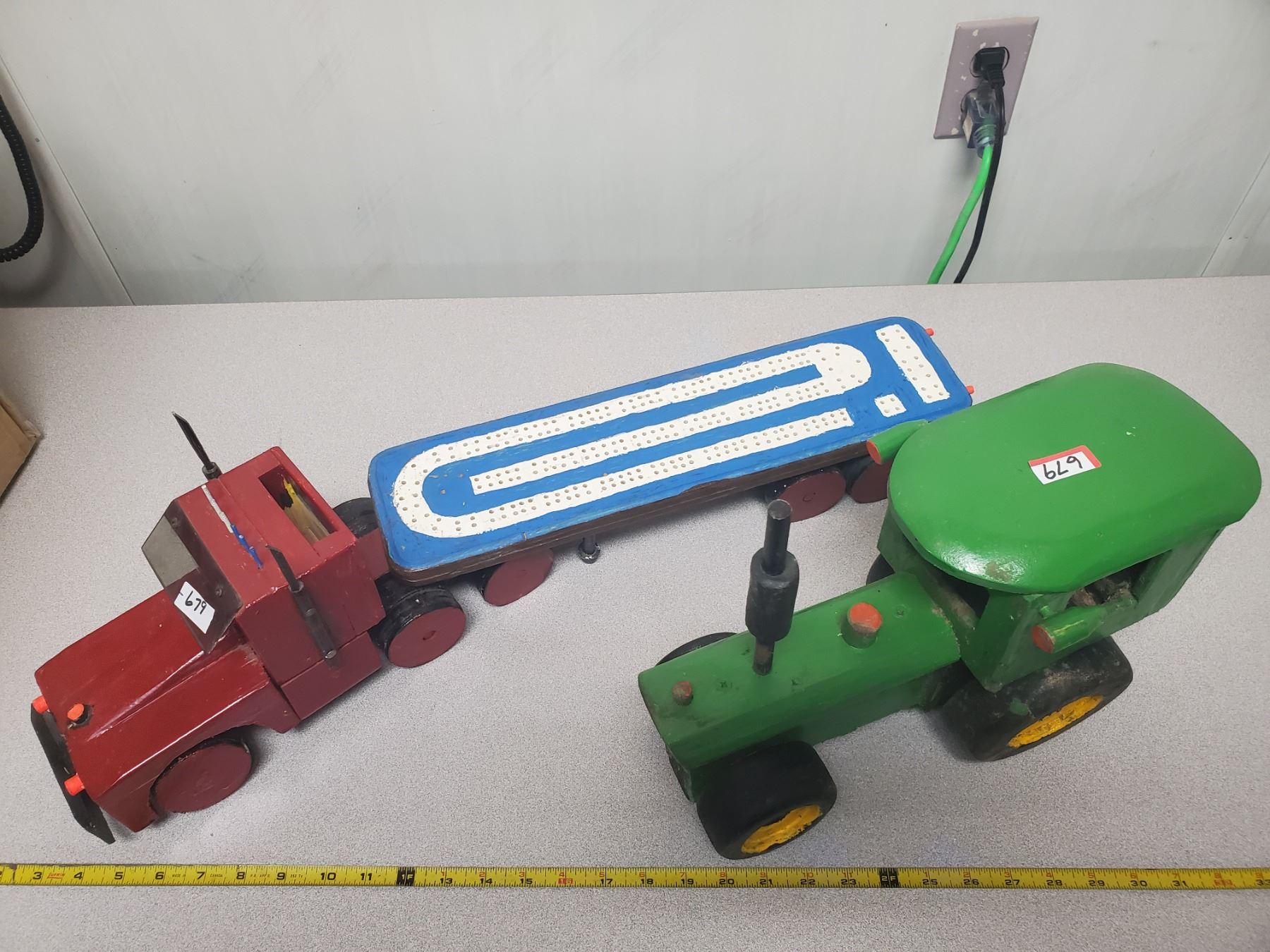 WOOD CRIB BOARD SEMI AND WOODEN TRACTOR