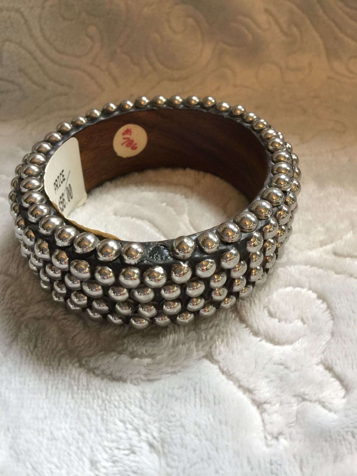 WOOD SILVER STUDDED CUFF BRACELET/1"WIDE***ONE STUD FELL OFF BUT IS INCLUDED**JUST NEED TO GLUE ON