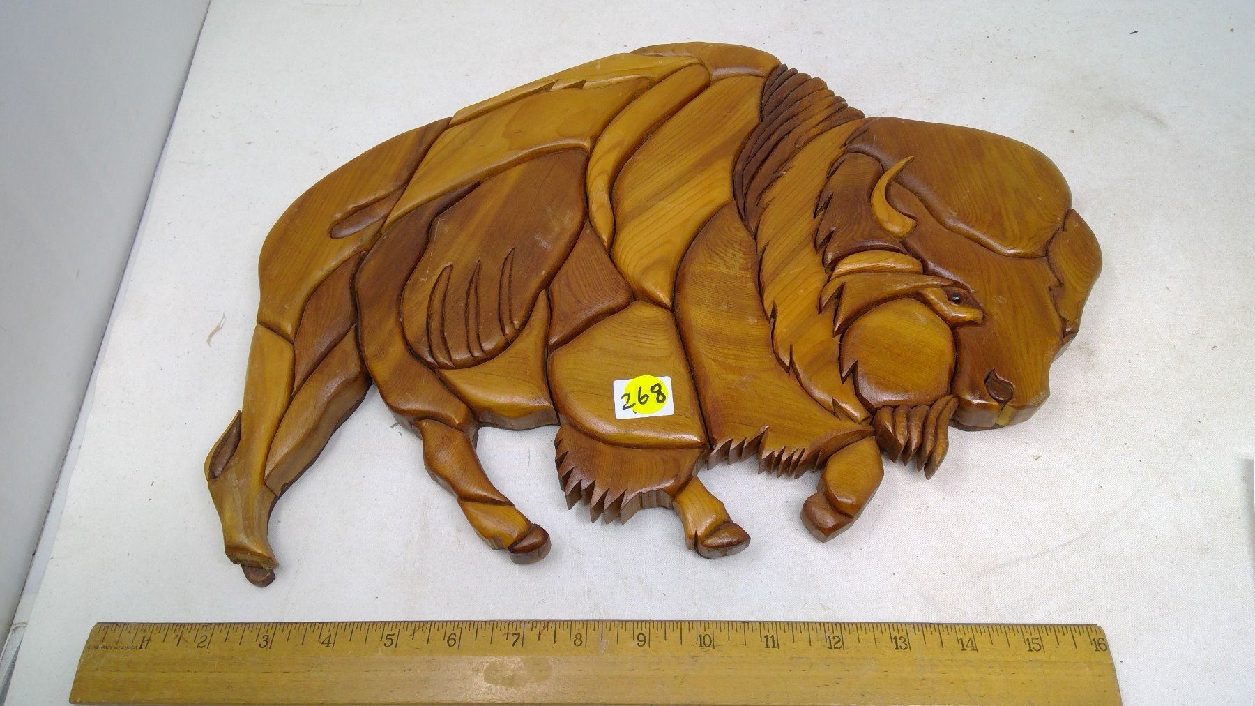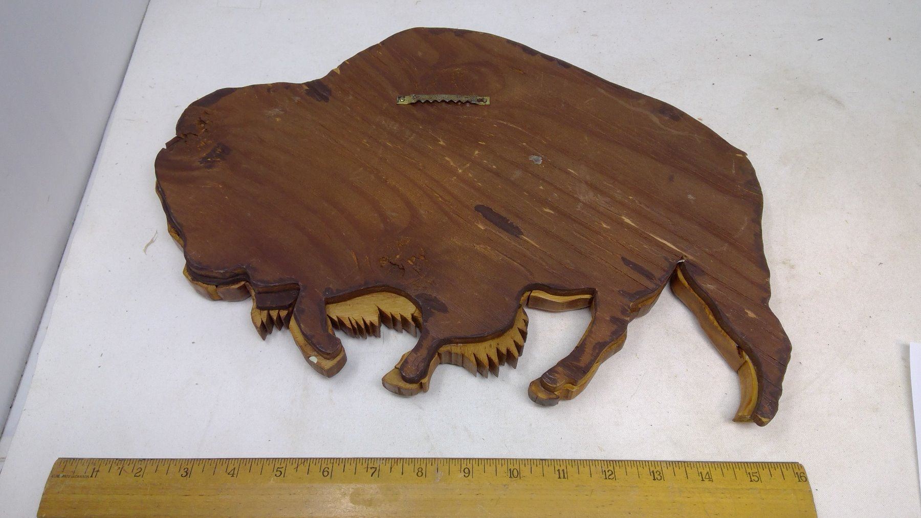 WOODEN BUFFALO/BISON WALL PLAQUE