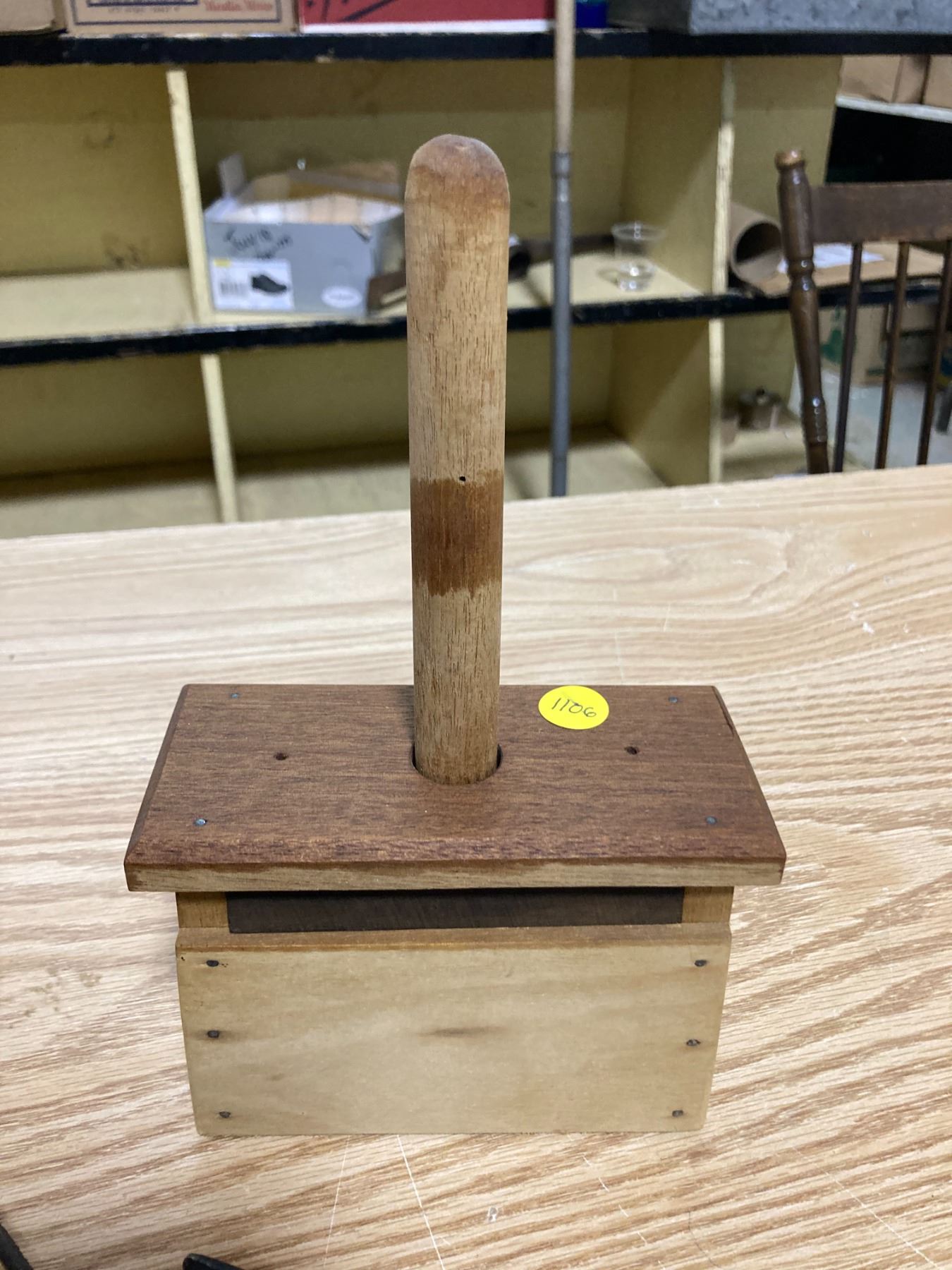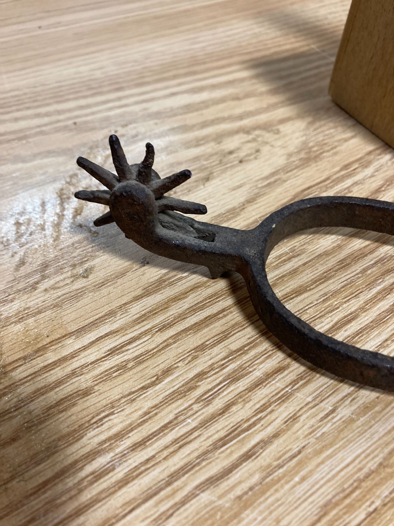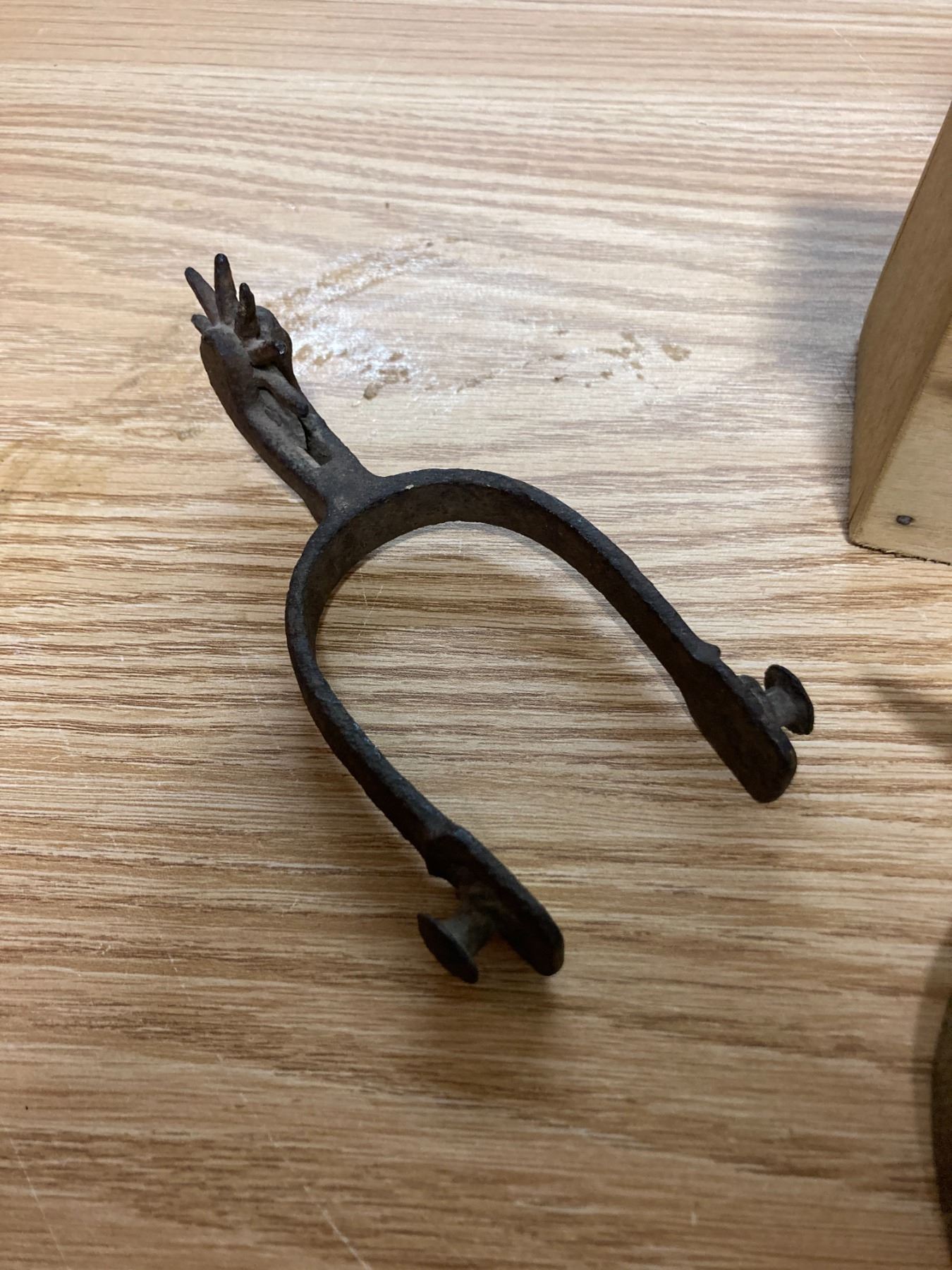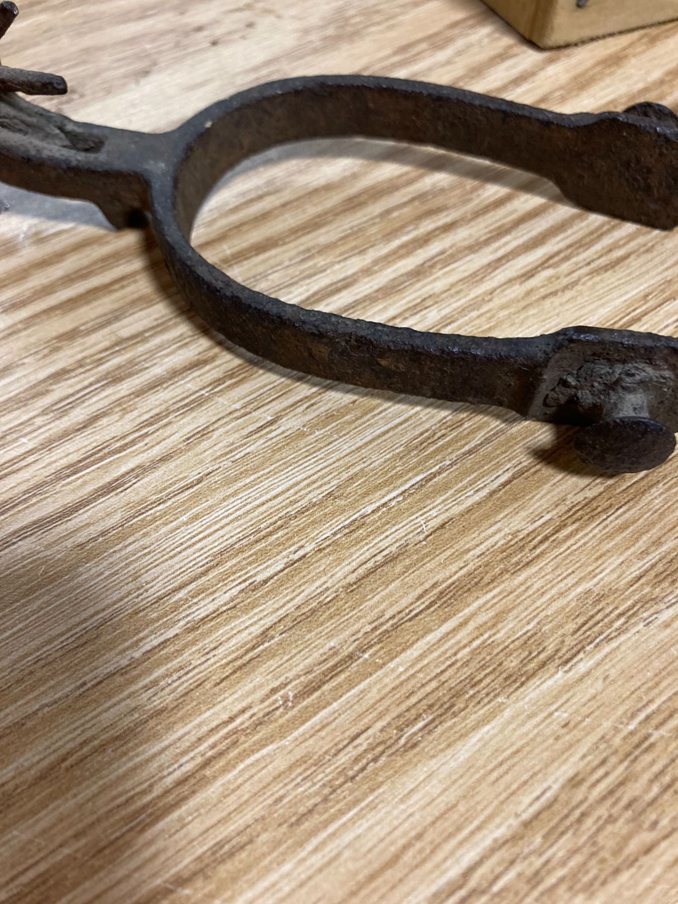 WOODEN BUTTER PRESS + PAIL AND ANVIL FIGERINE + DECRATIVE SPURS
