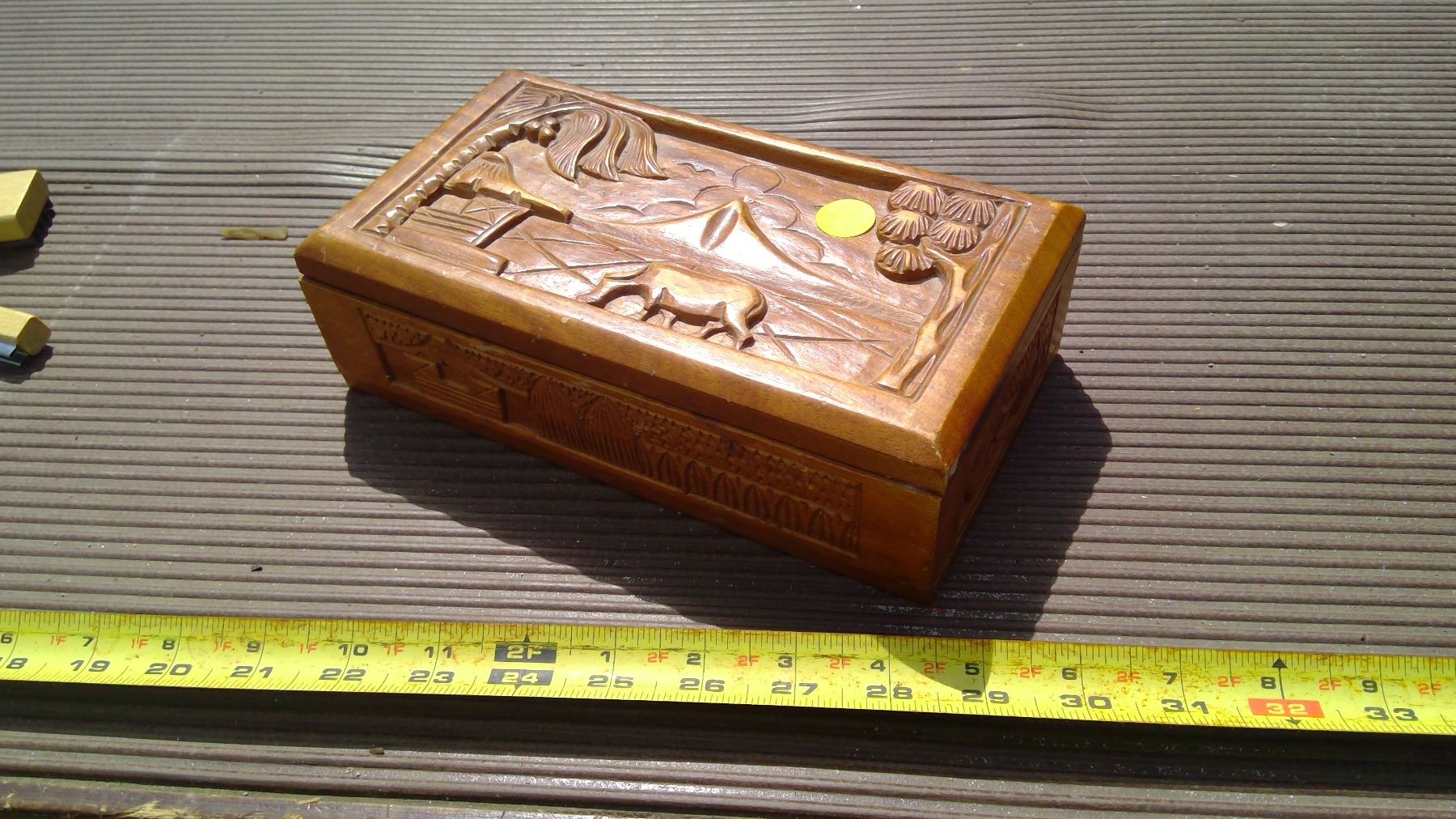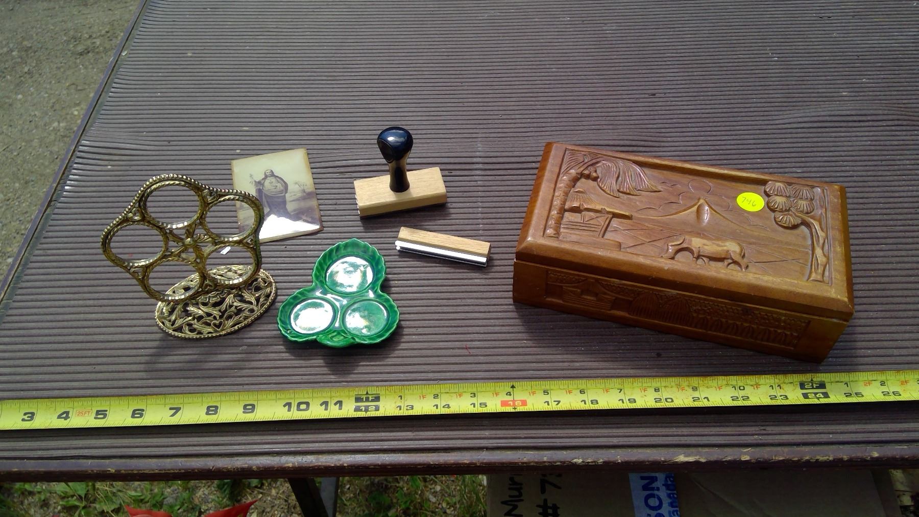 WOODEN JEWELRY BOX AND MISCELLANEOUS ITEMS