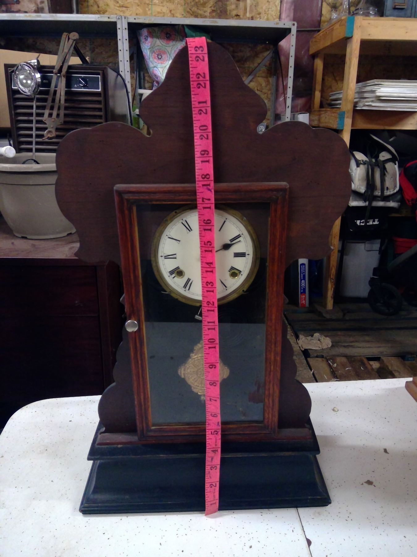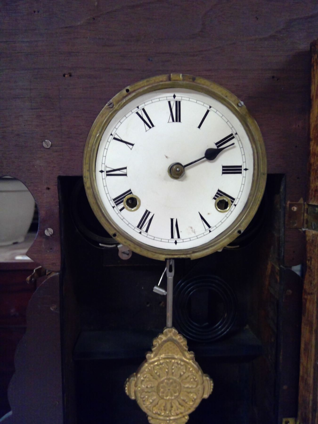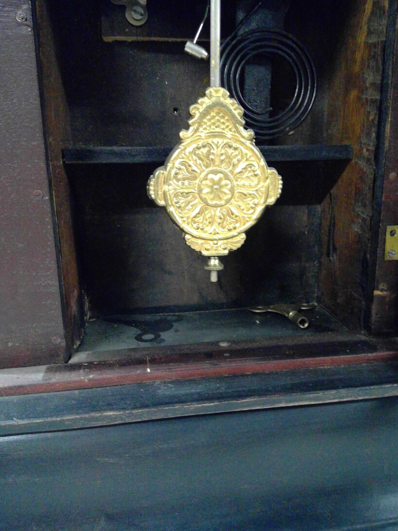 WOODEN STANDING CLOCK W/ PENDULUM AND KEY