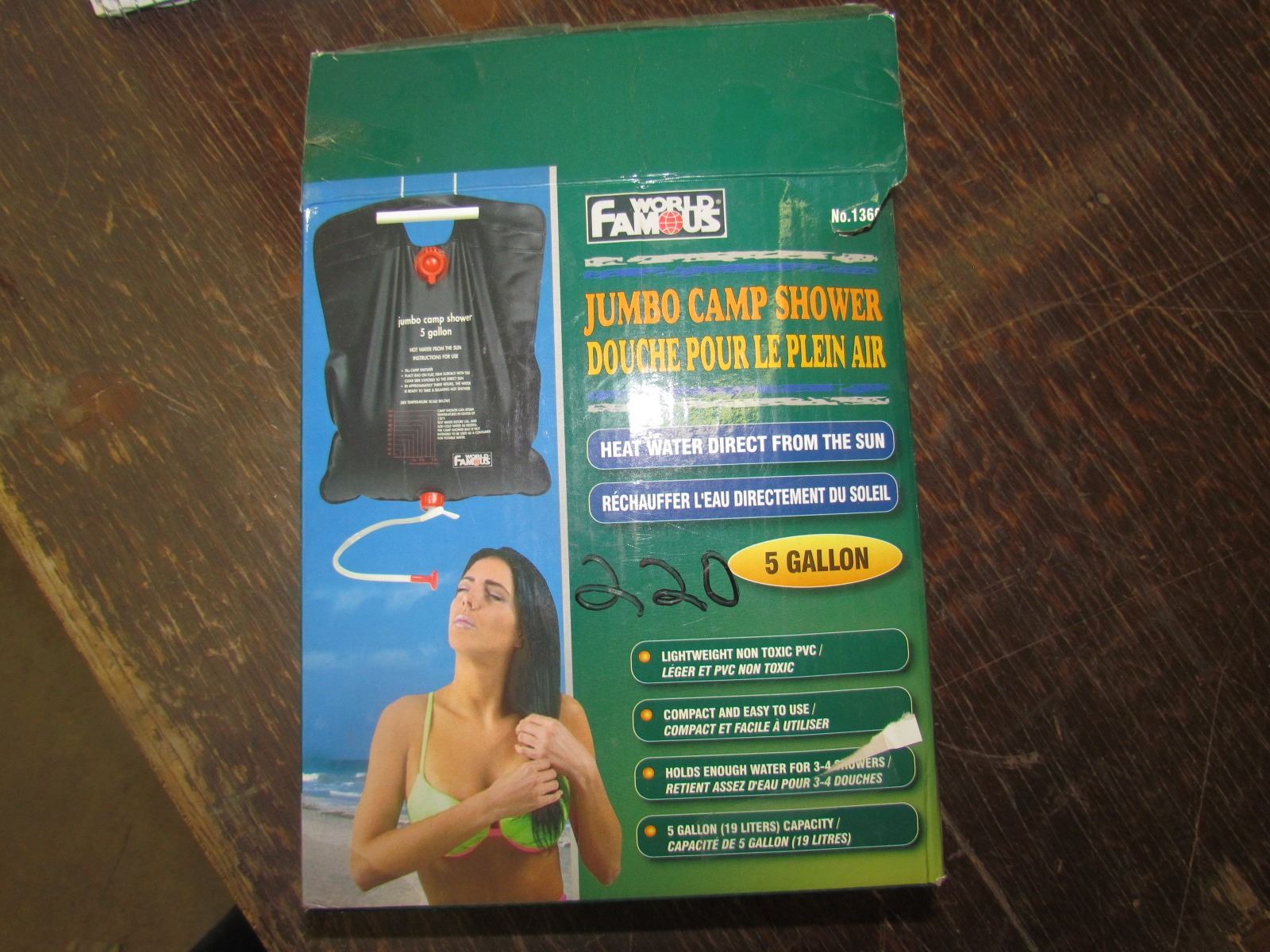 WORLD Famous 5 gal. Camp shower, heats from sun, returned