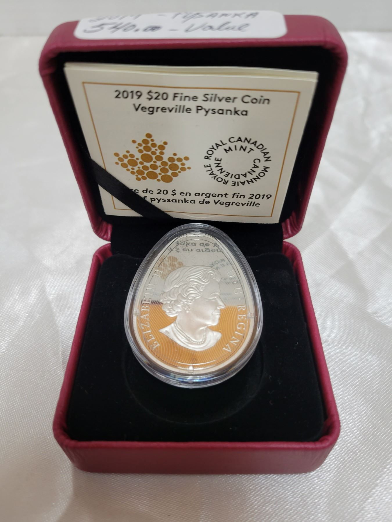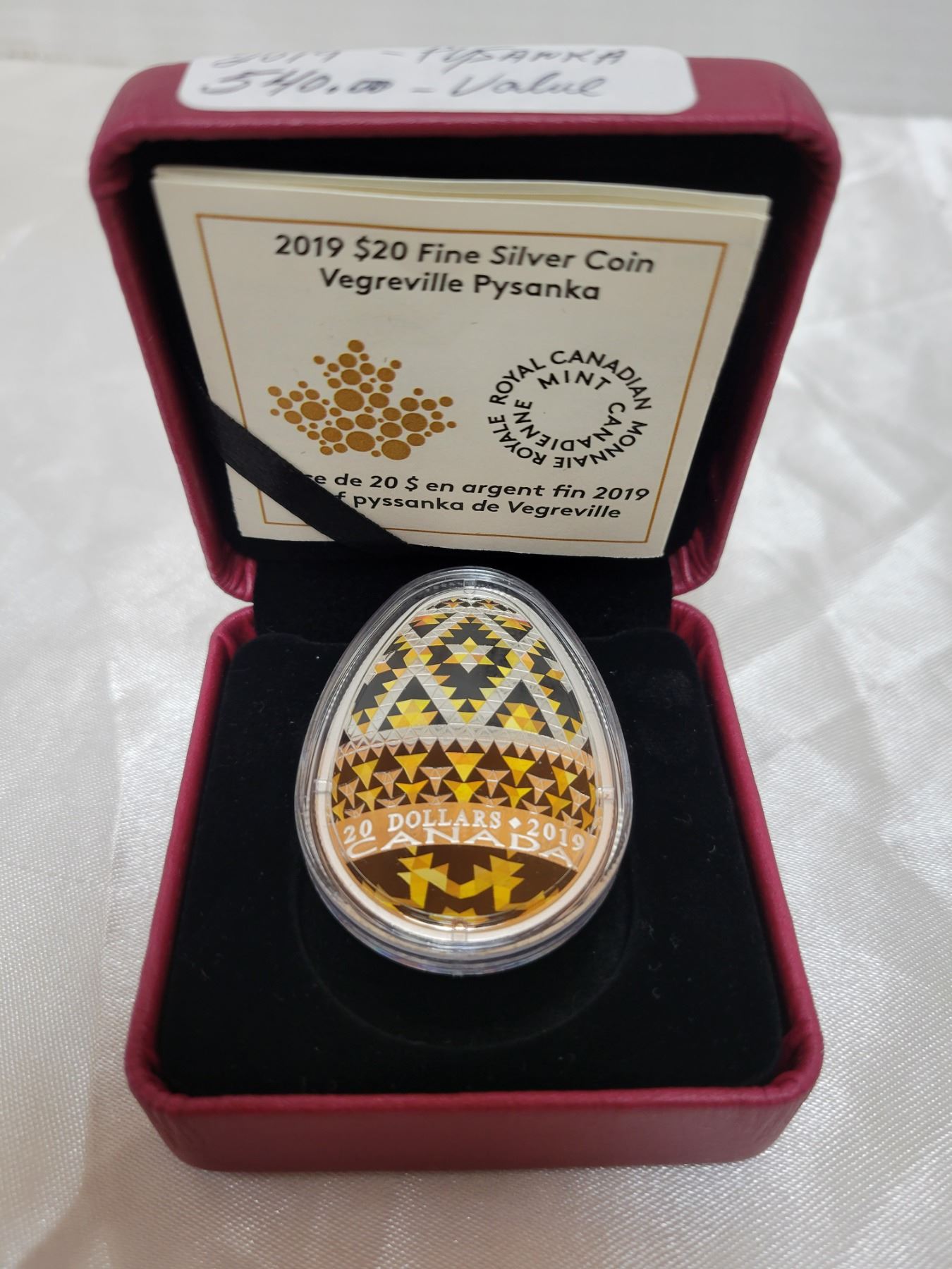 WOW! 2019 fine silver $20 Psyanka RCM coin with C.O.A. in case - this coin has a retail value of over $540.00