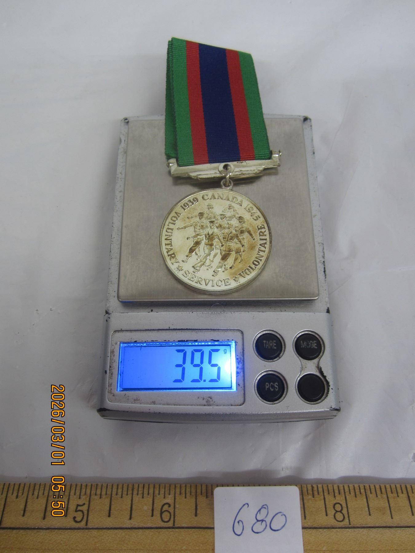 WW2 Canadian Sterling Silver 925 1939-1945 Voluntary Service Medal 39.3 Grams