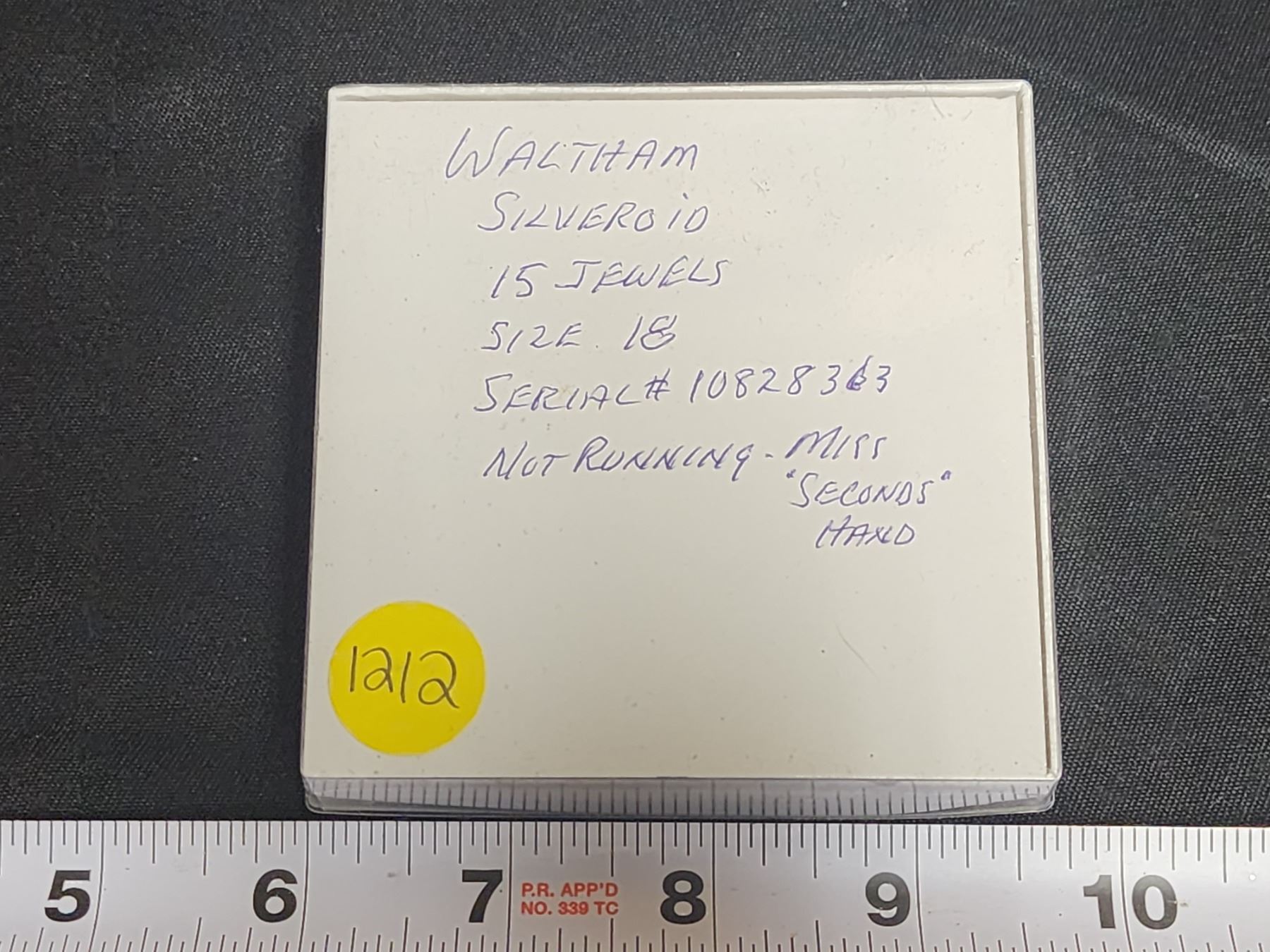 Serial #10828363 Size 18, silveroid - 15 jewels - Not running, over wound