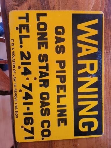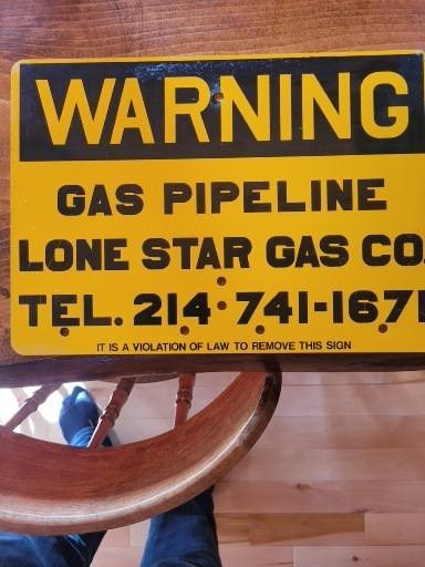 Warning - Gas pipeline metal sign never used Lone Star Gas Co Texas