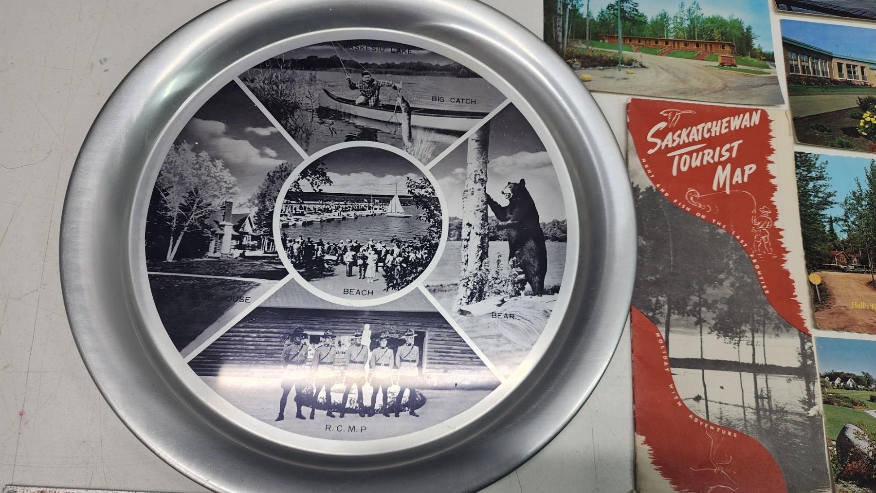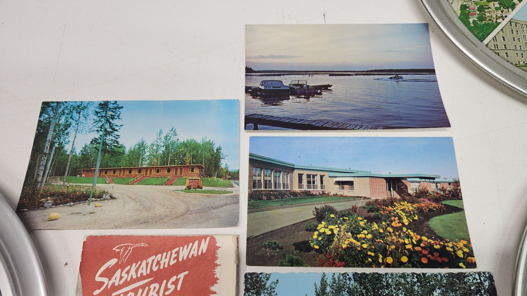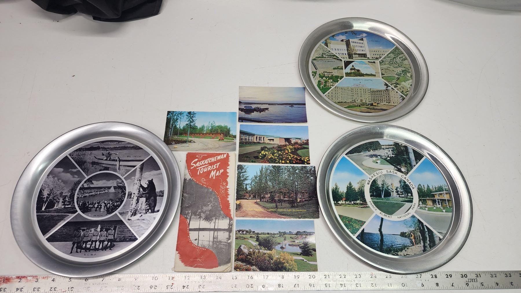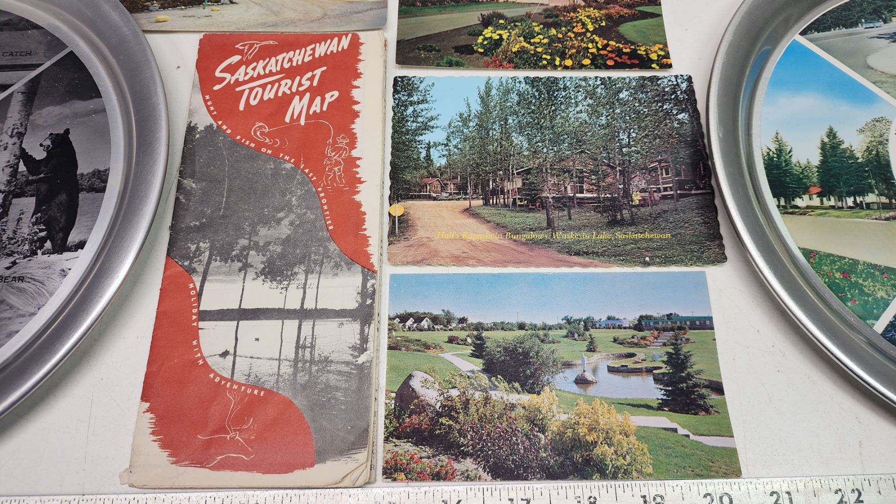 Waskesiu and Saskatoon Vintage Souvenir Trays, Postcards and 1951 Sask Tourist Map