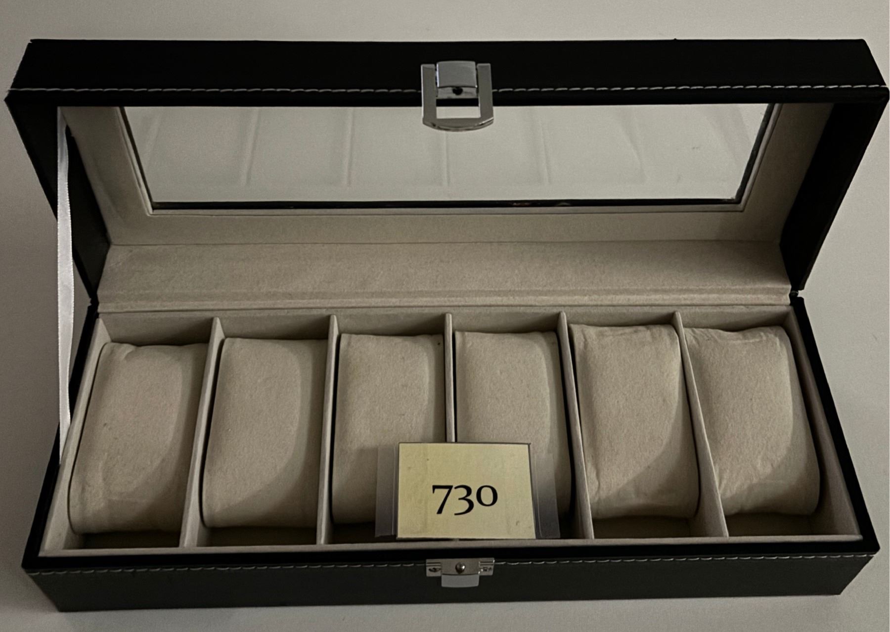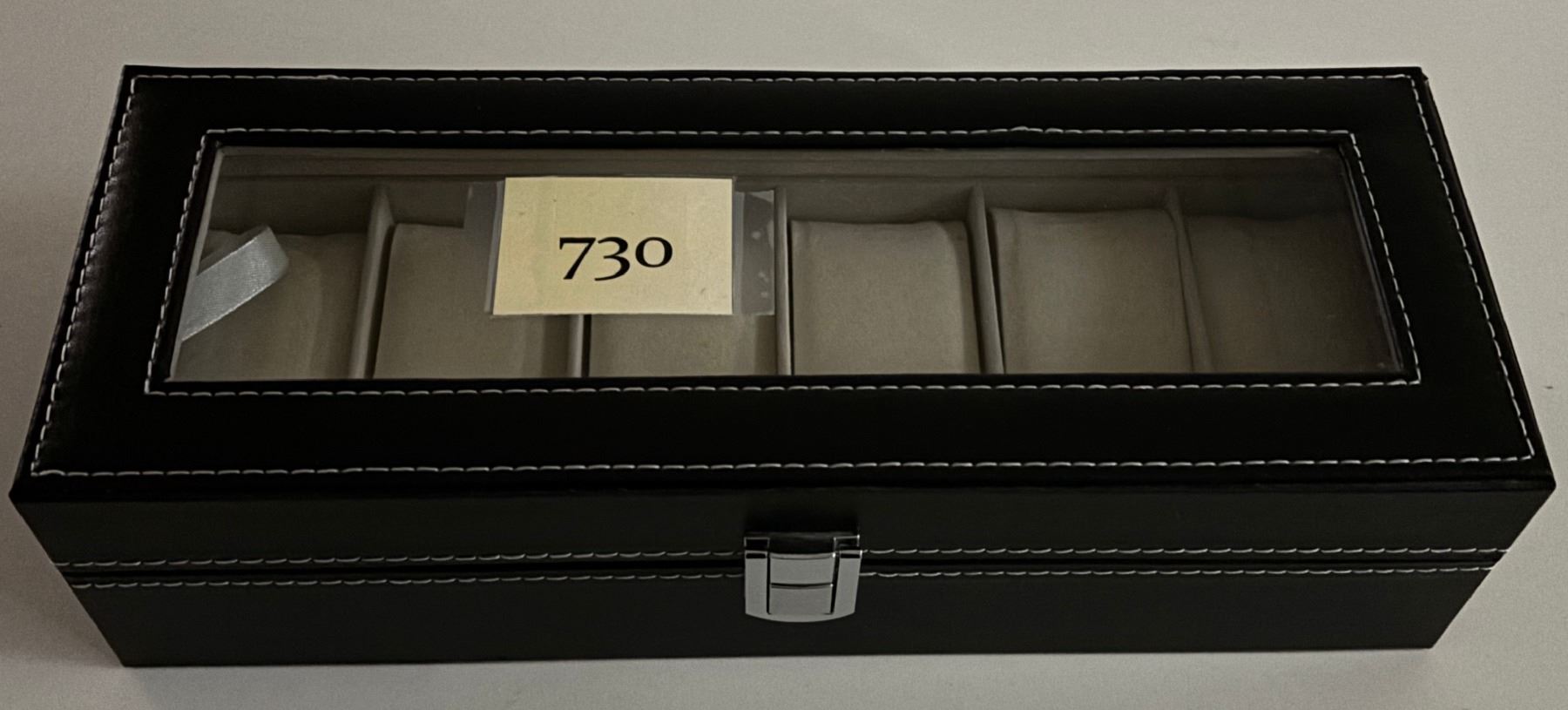 Watch Case - Holds 6 Watches - Black Leather 12" x 4 1/2".