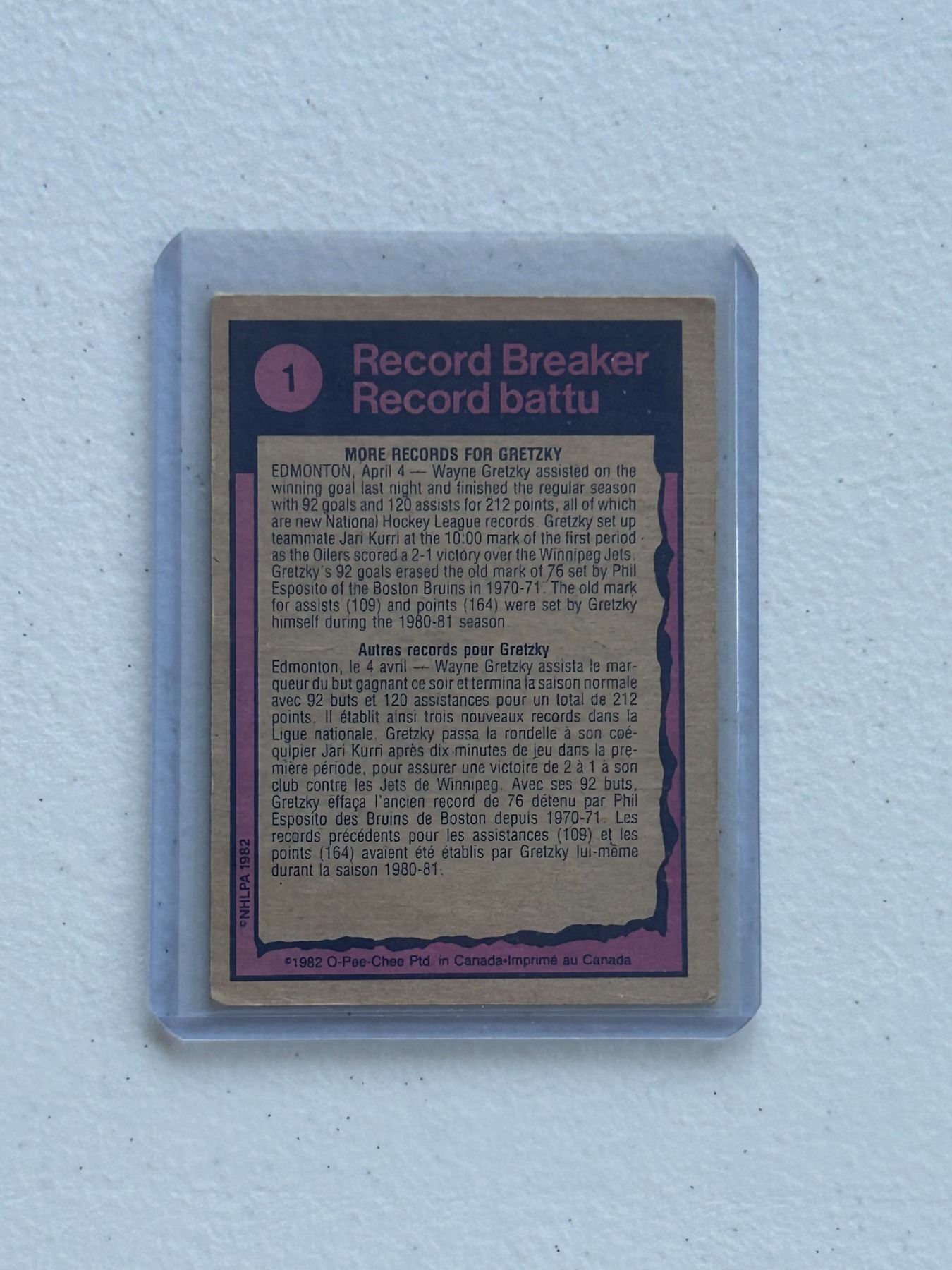 Wayne Gretzky - 1983-84 Record Breaker - Hockey Card