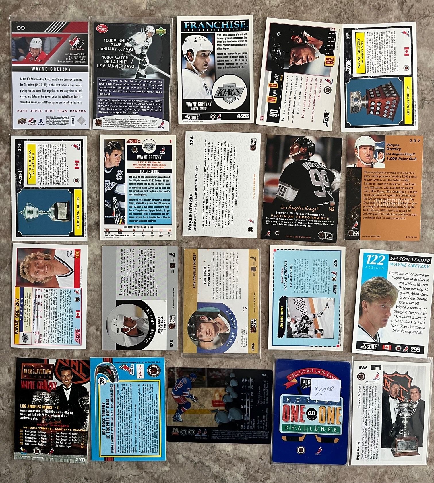Wayne Gretzky lot of 20 different cards.