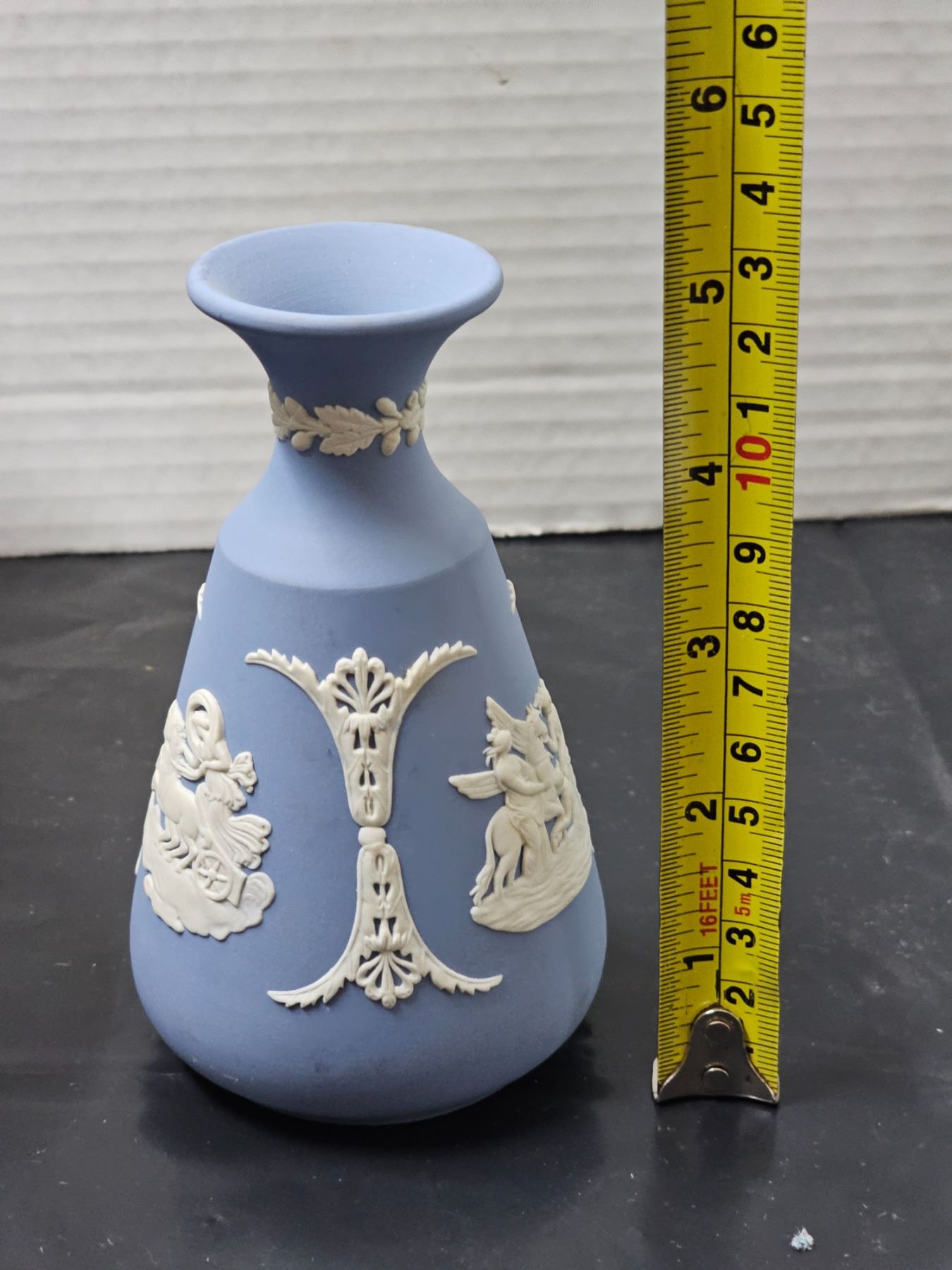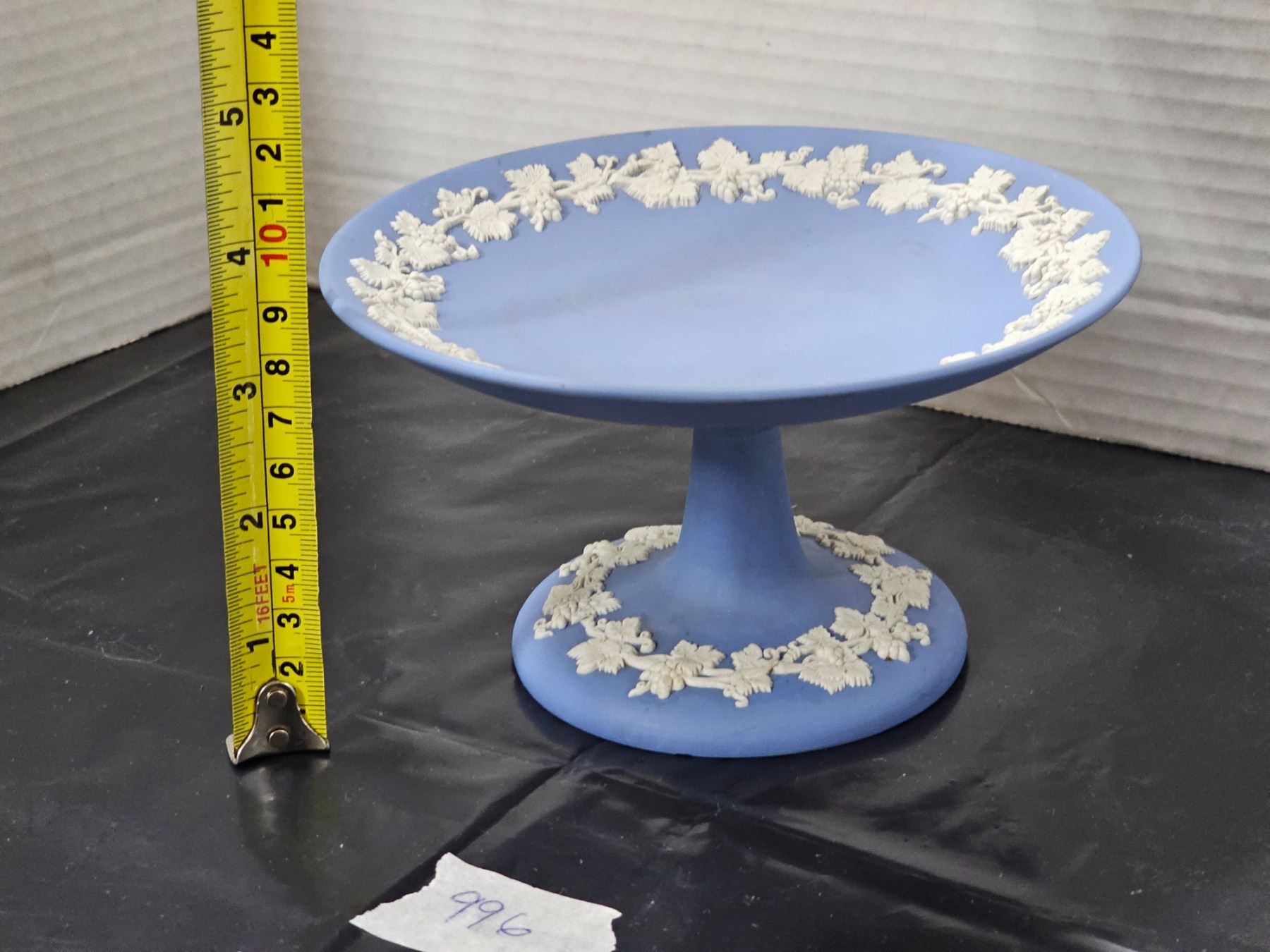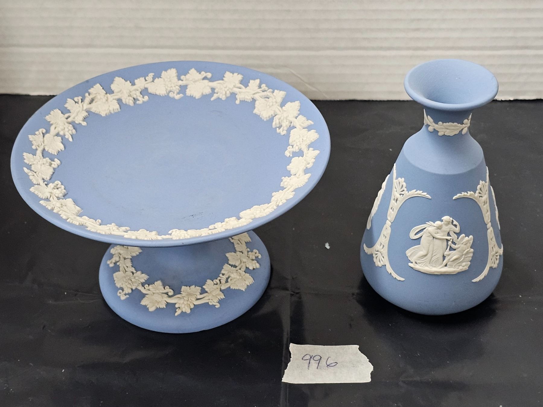 Wedgewood Blue Jasperware Compote Pedestal Dish and 5” Vase