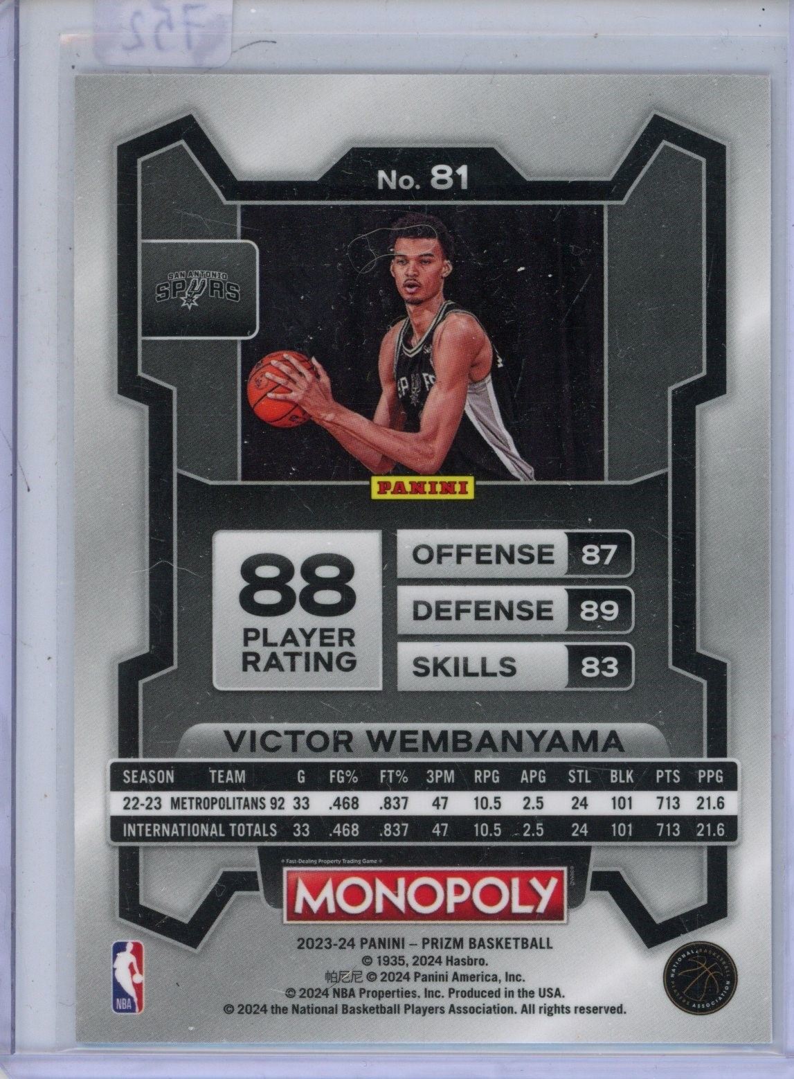 Wembanyama Rookie Card 2023-24 Panini Prizm Monipoly #81