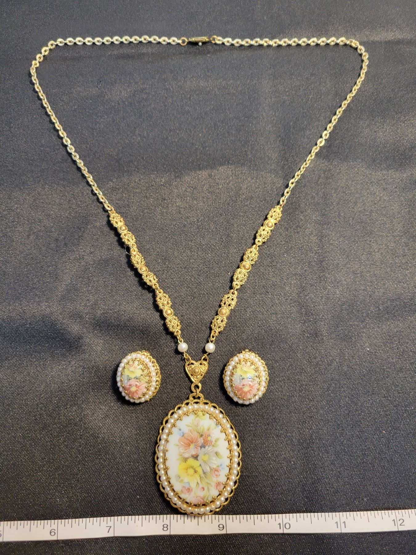 West Germany porcelain necklace set, vintage