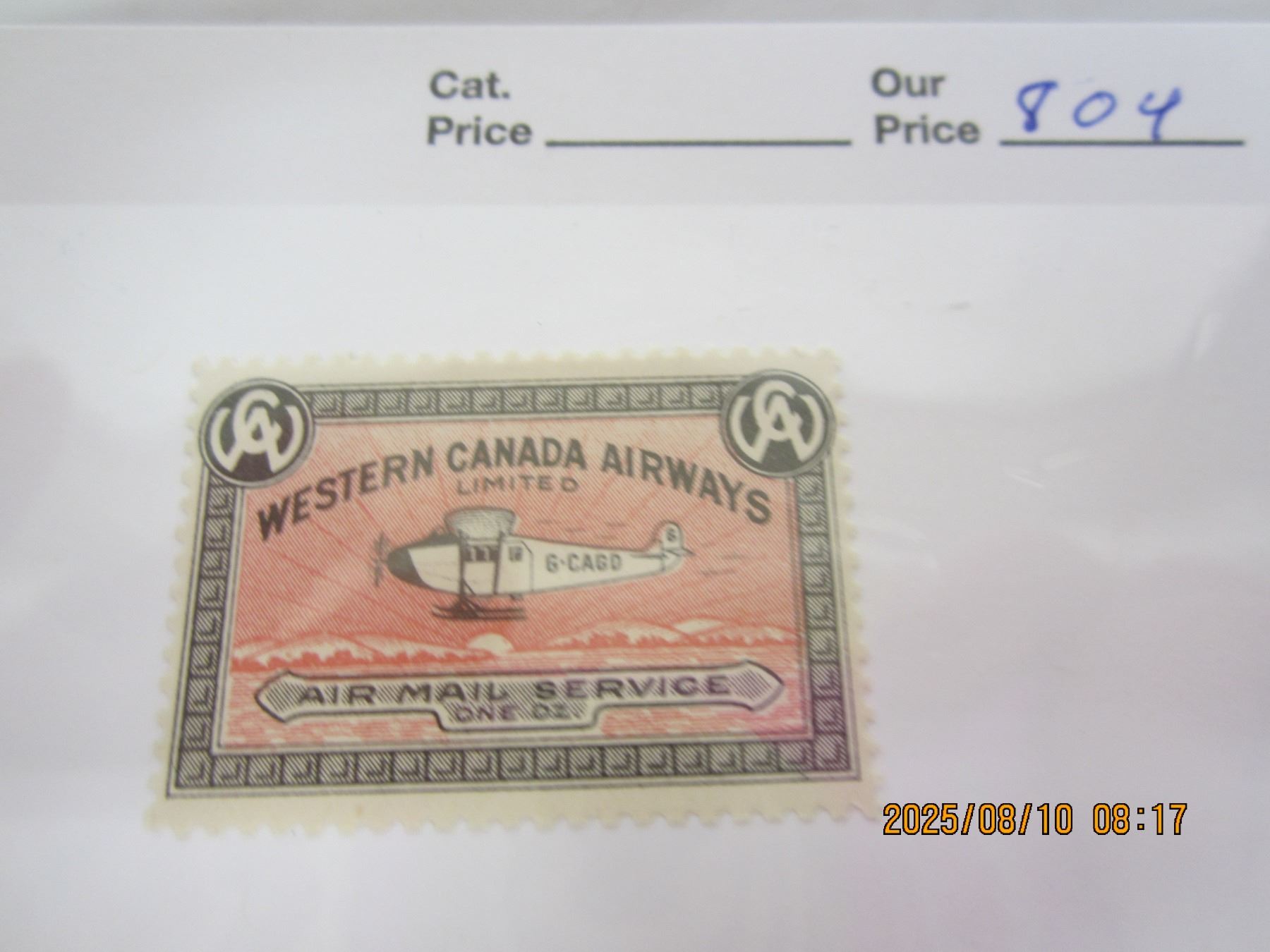 Western Canada Airways 1920's OG,NH, Never Used