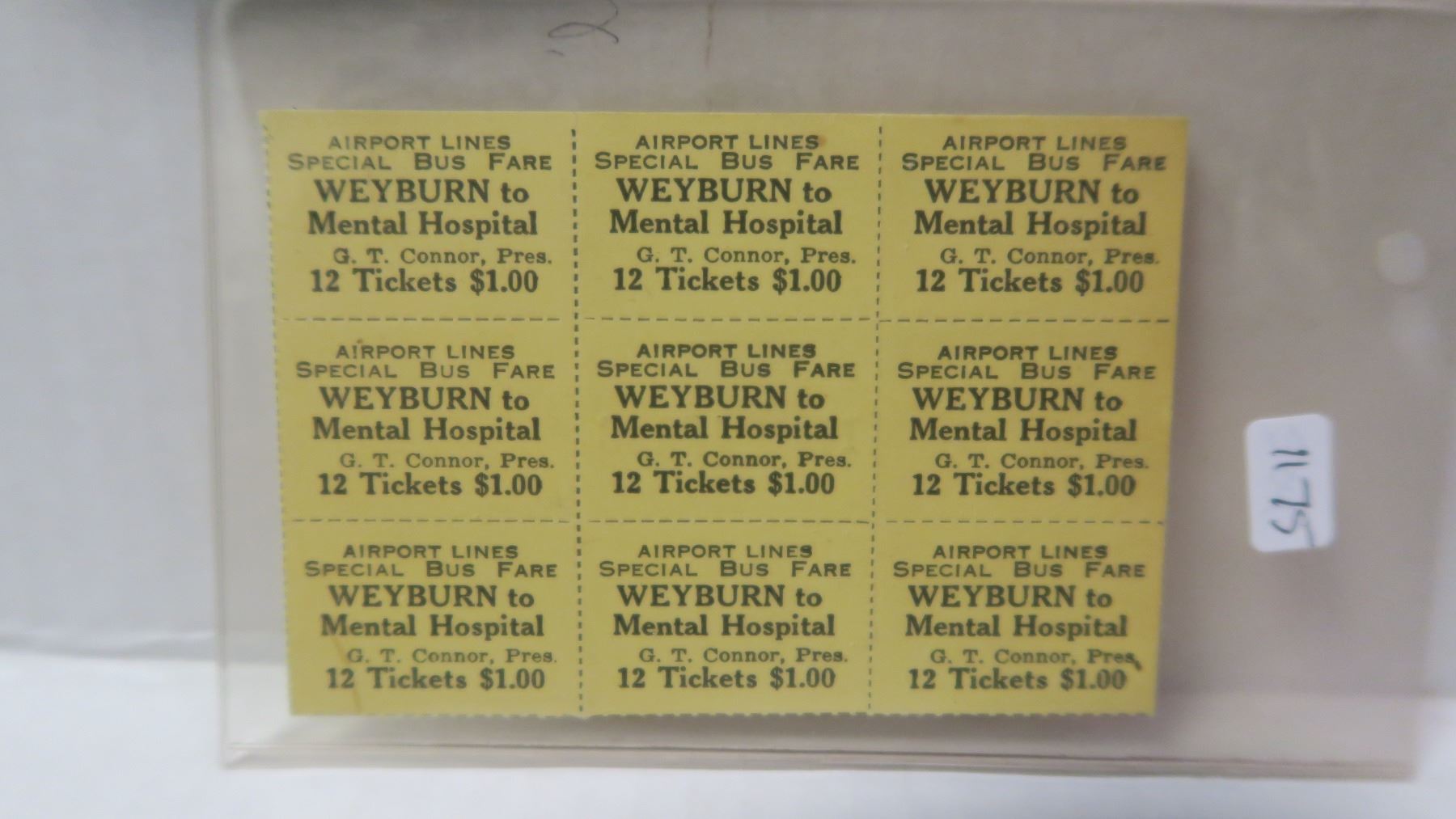 Weyburn, Saskatchewan Airport Lines Special Bus Fare to Mental Hospital tickets. Set of 12 Tickets cost $1.
