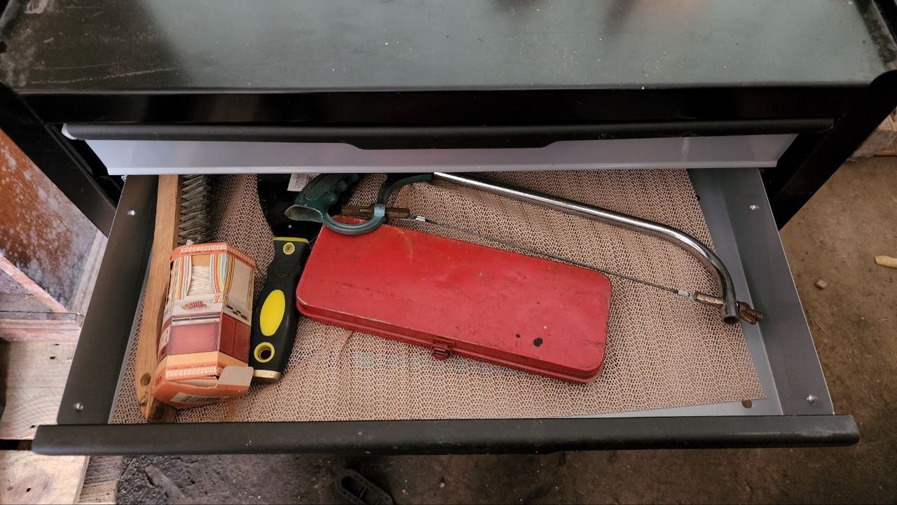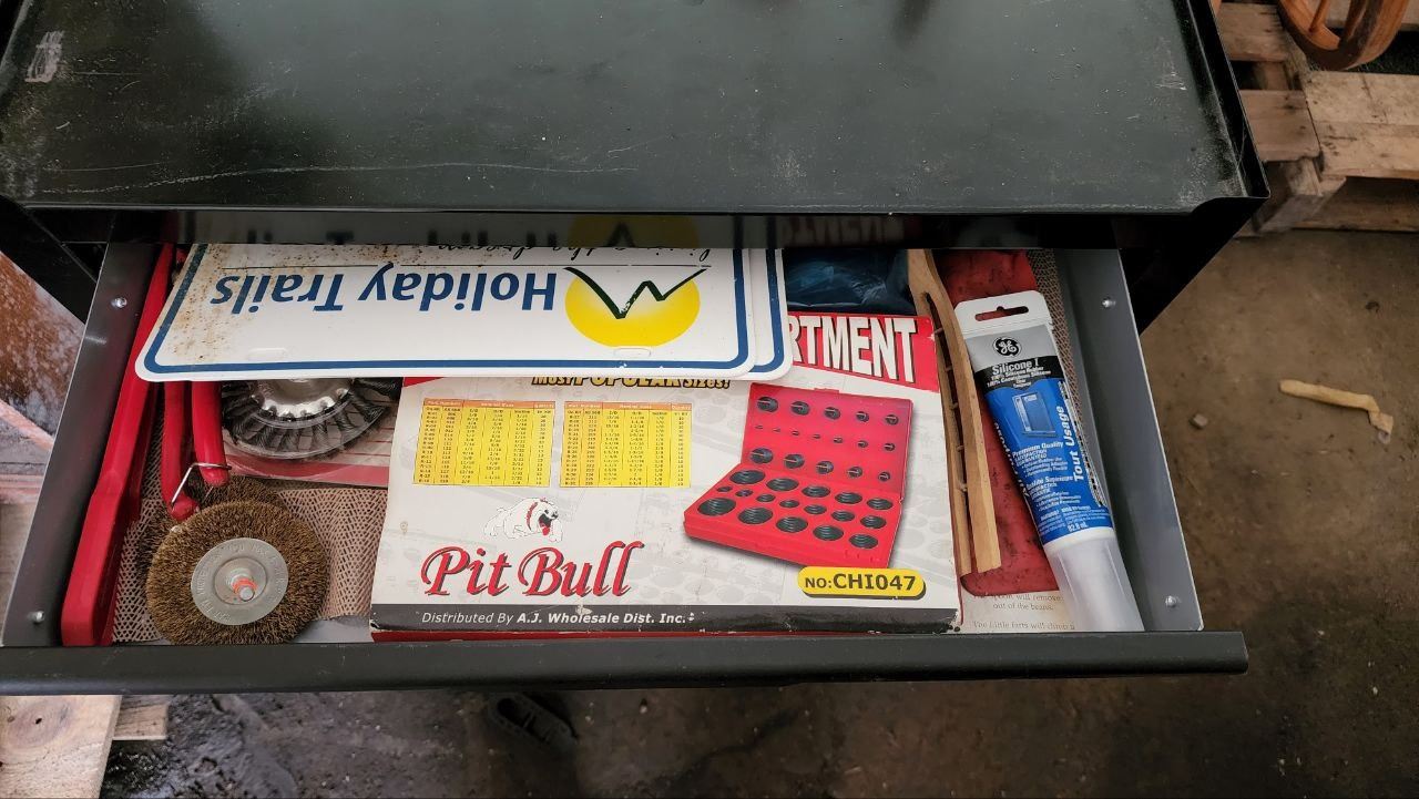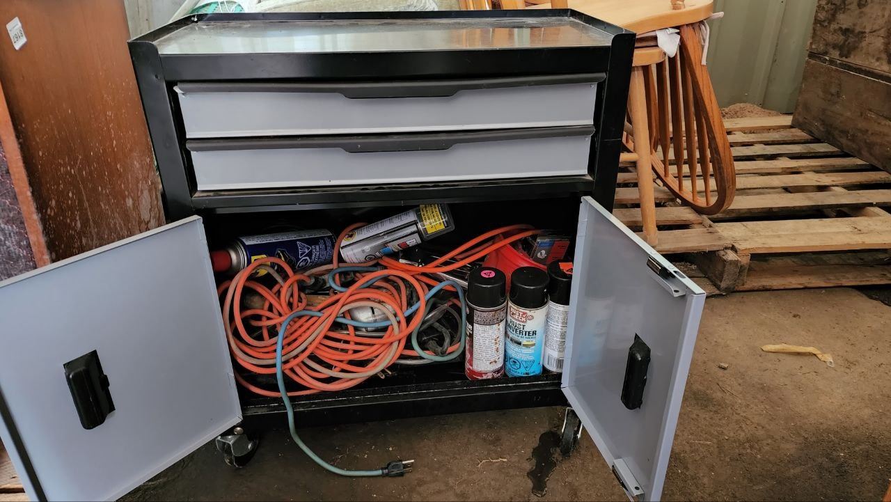 Wheeled toolbox/chest filled with misc tools, supplies, etc. H-2ft 4" W-2ft D-1ft