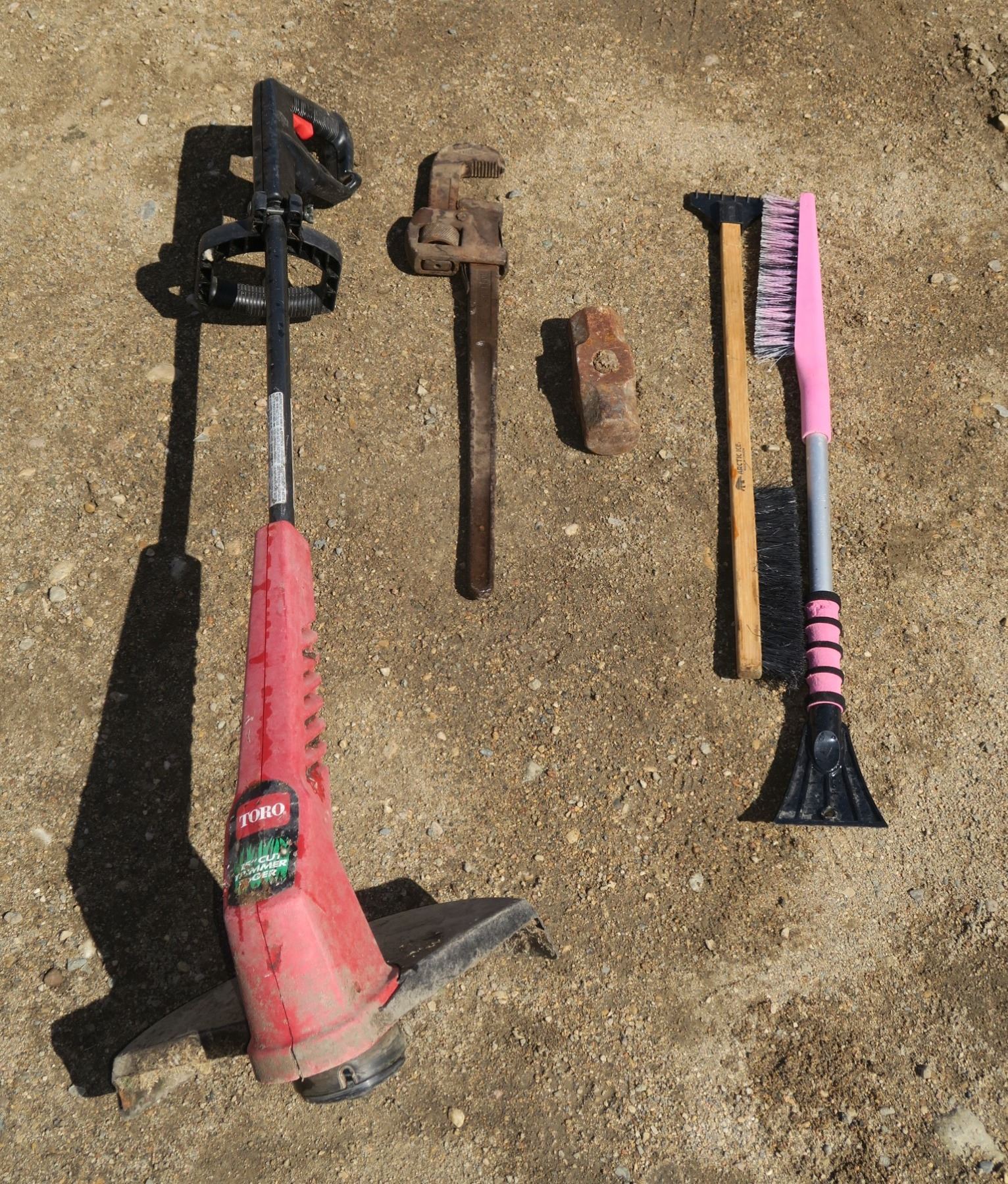 Whipper Snipper, Pipe Wrench + Sledgehammer
