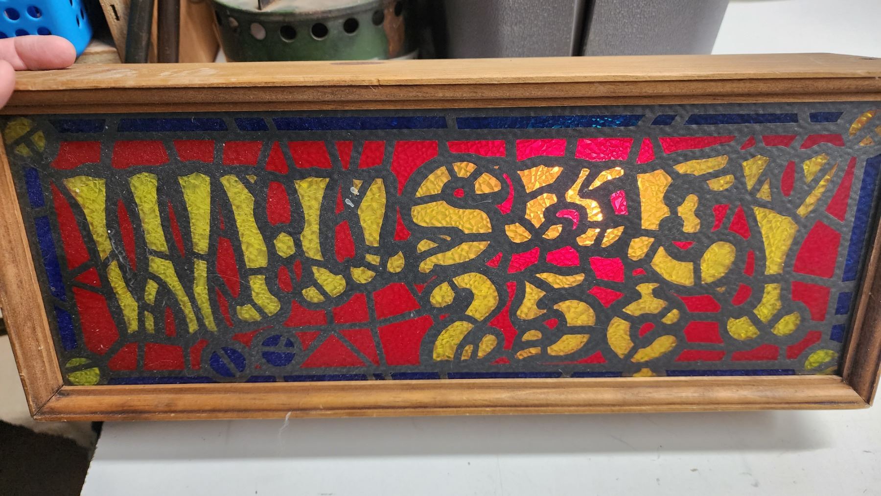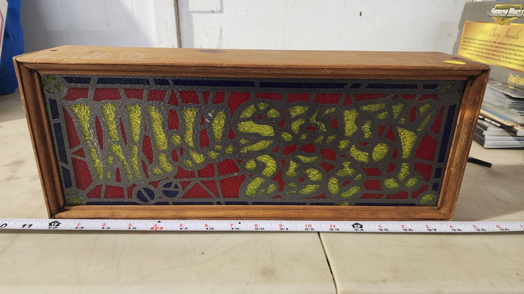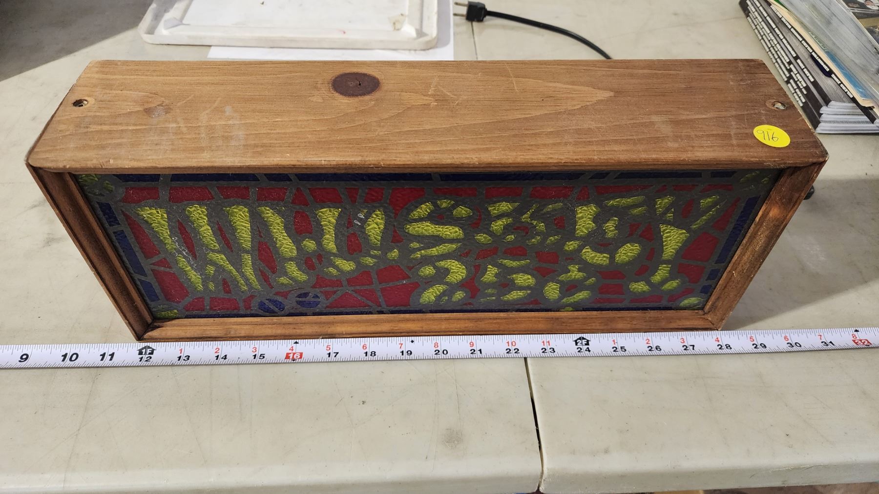 "Whiskey 25 cent" wooden light up sign, look a like stain glass cover (plastic) - tested works