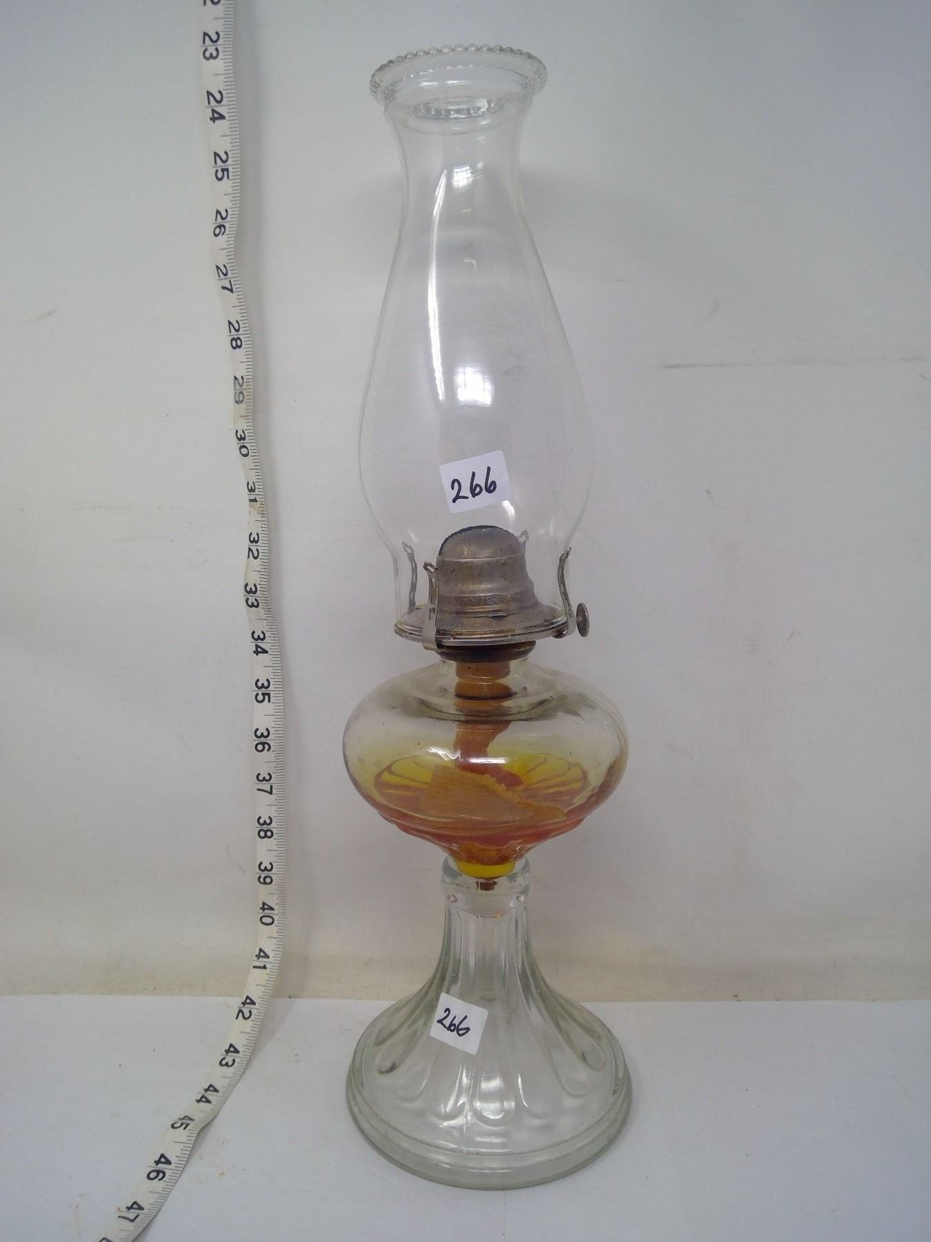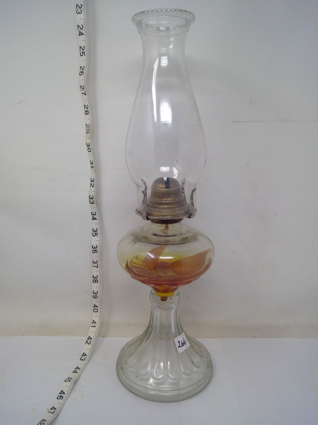 “White Flame” model kerosene lamp. Vintage made in Grand Rapids Michigan, 1930. All there, all original, wick and working. Height 17”.