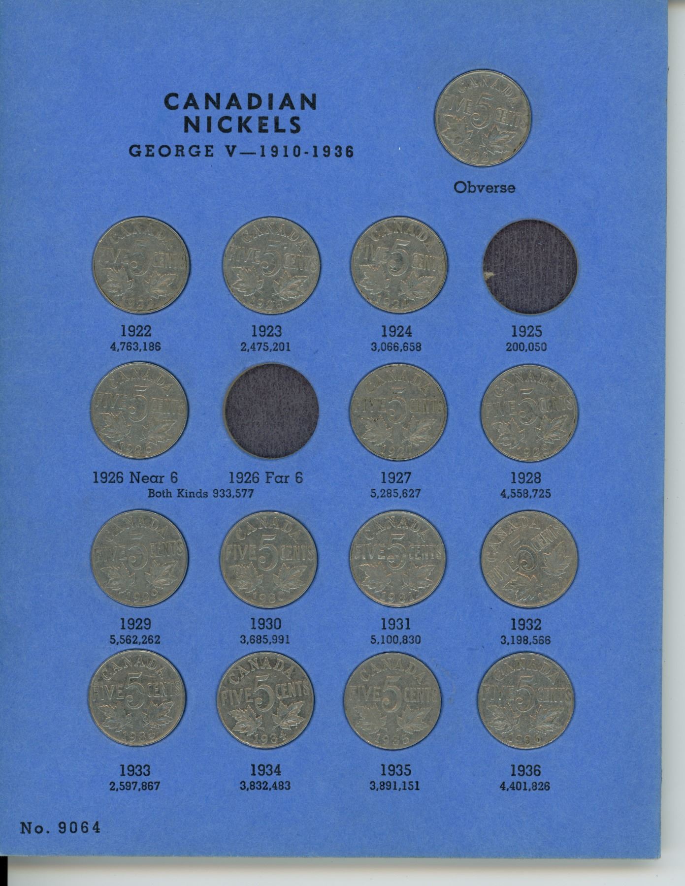 Whitman Canadian nickel book 1922-on (missing 1925 & 1926 F6)