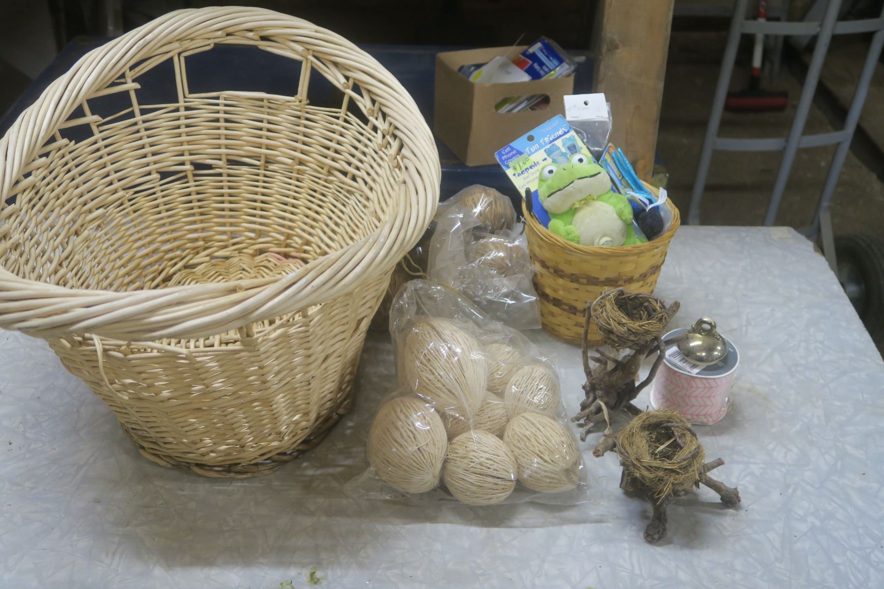 Wicker Basket with Decorations & Smaller Wicker Basket with Pet Toys and Stationary Items