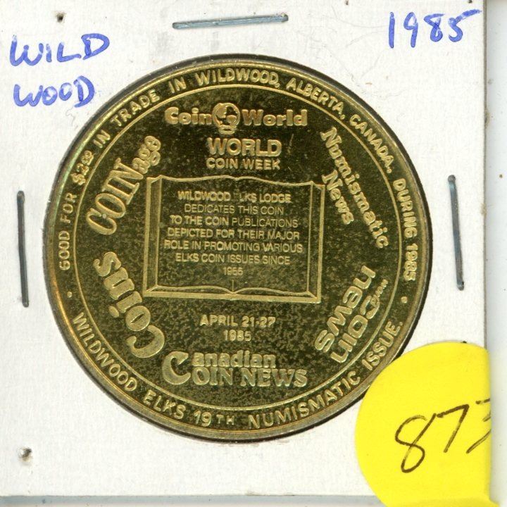 Wildwood Alberta 1985 Trade Dollar. Issued by the Elks Lodge. Celebrating Coin World Coin Week. Uncirculated.