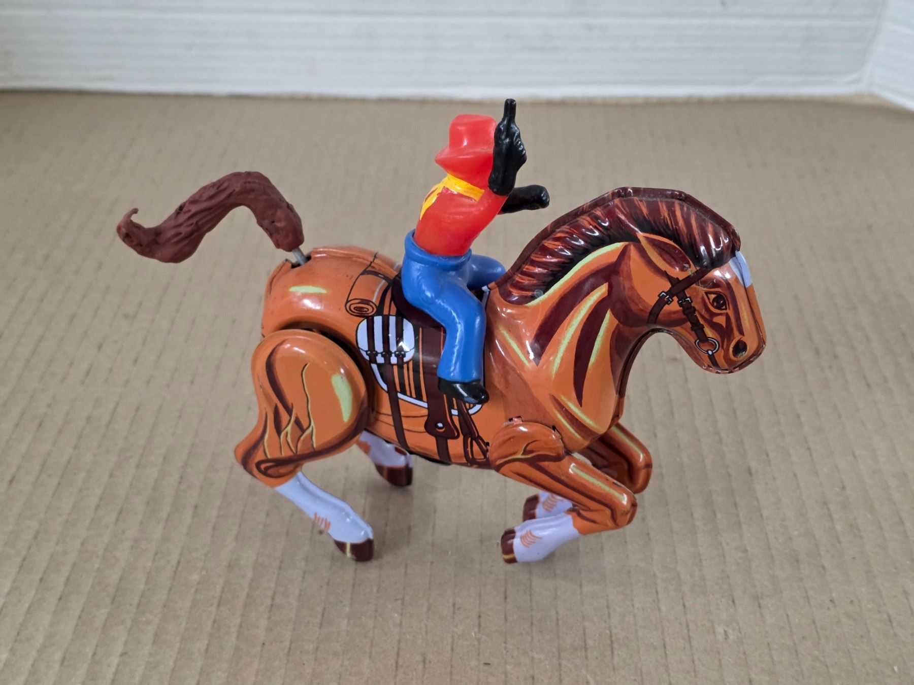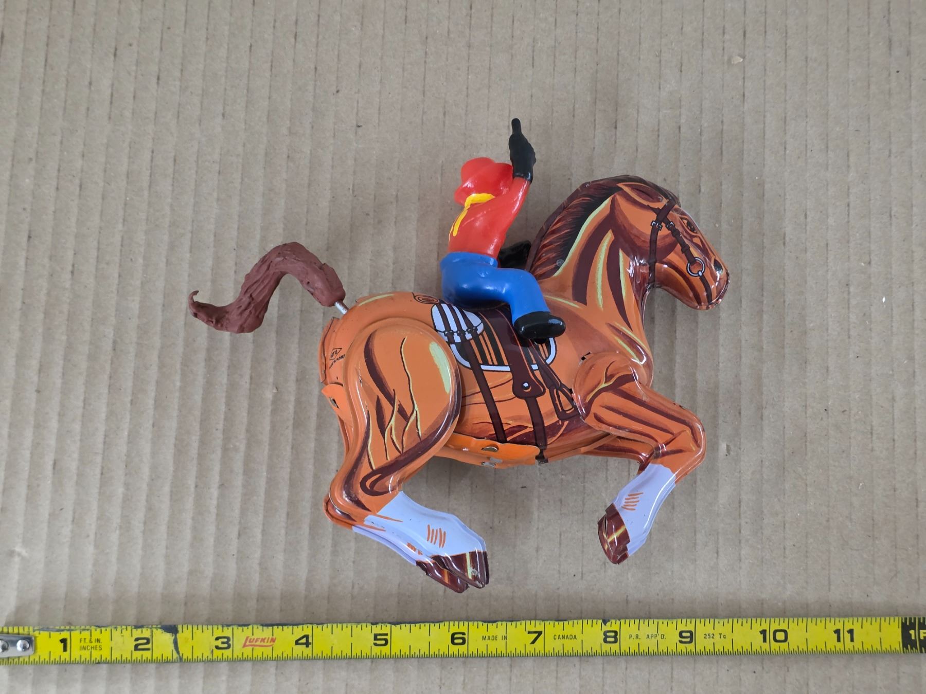 Wind up cowboy and horse toy-6"L- MTU- made in korea