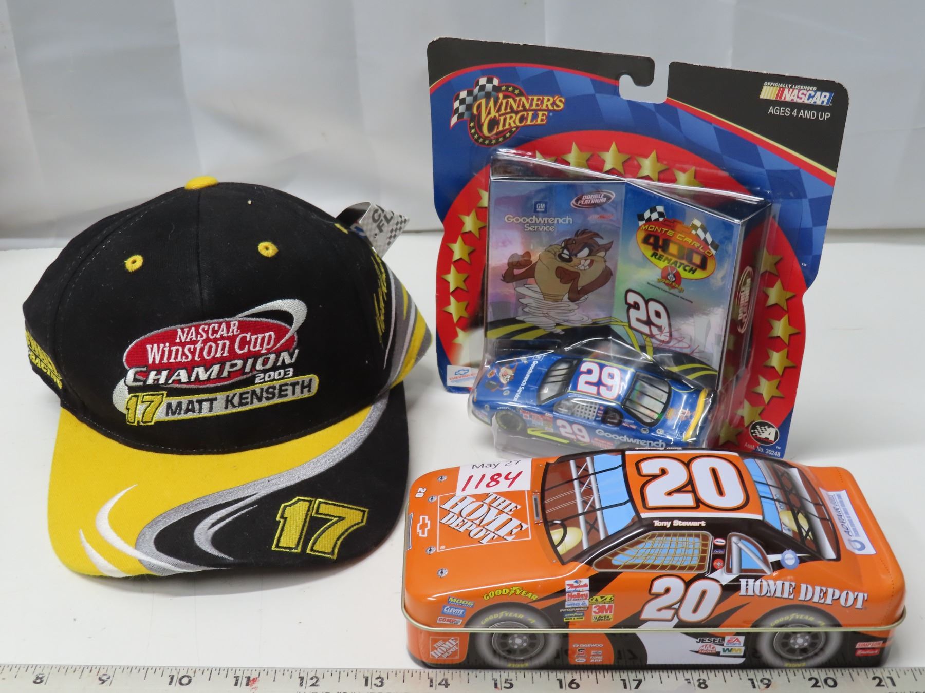 Winner’s Circle GoodWrench Service #29 + Nascar Winston Cup Champion 2003 17 Matt Kenseth hat – New, plus Race care chocolate tin