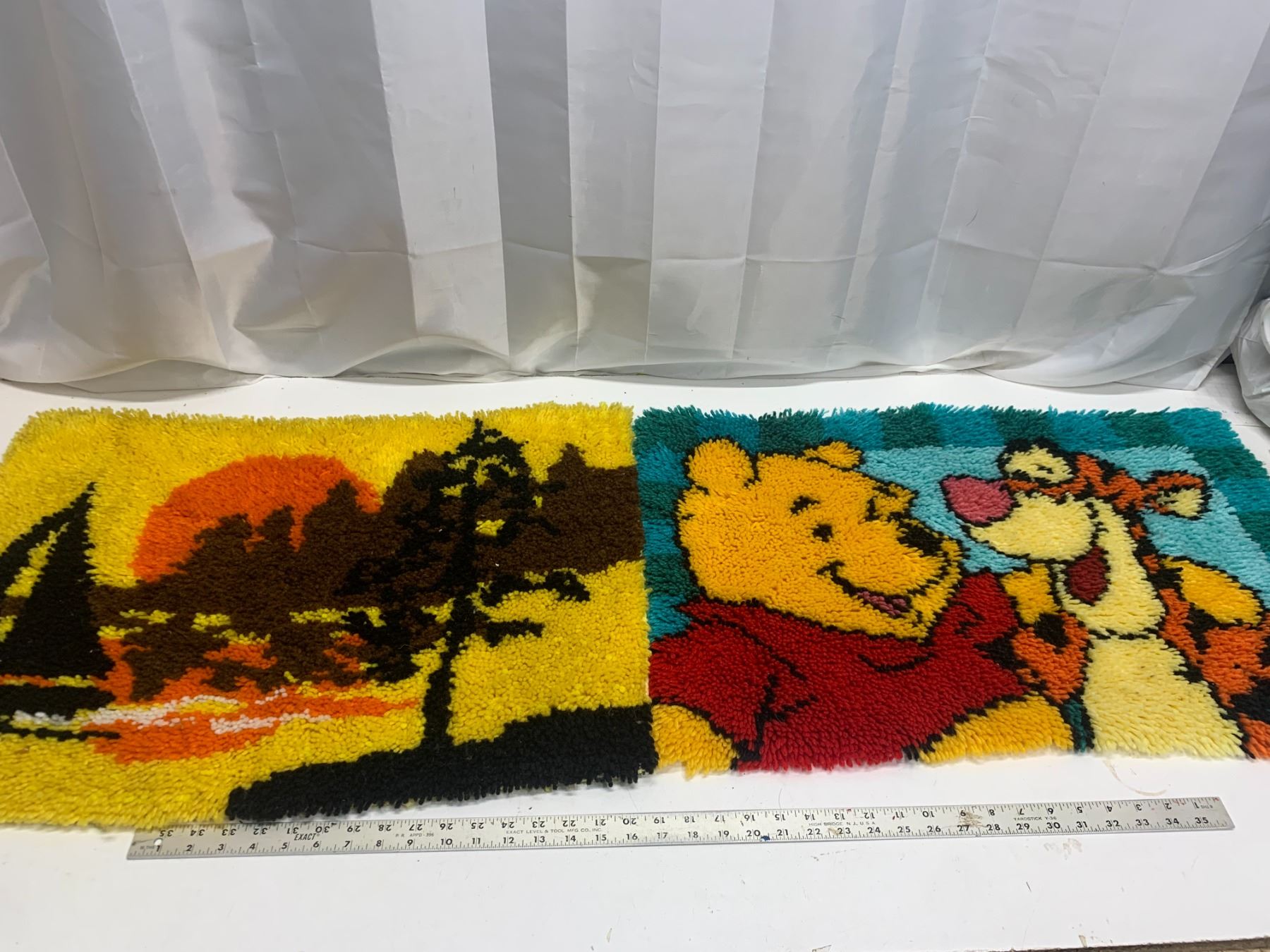 Winnie the Pooh latch hook wall hangin and Sailboat latch hook wall hanging