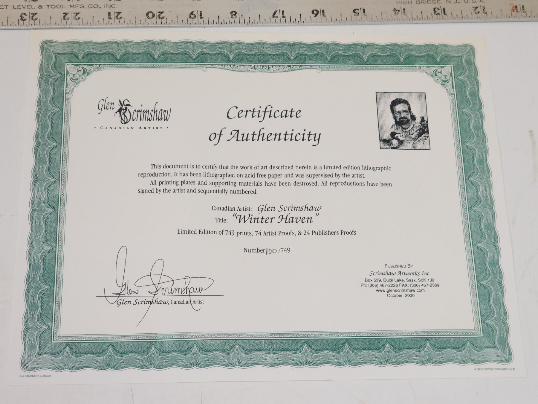 "Winter Haven" by Glen Scrimshaw, framed glass - limited edition print - 100/749 - c/w certificate