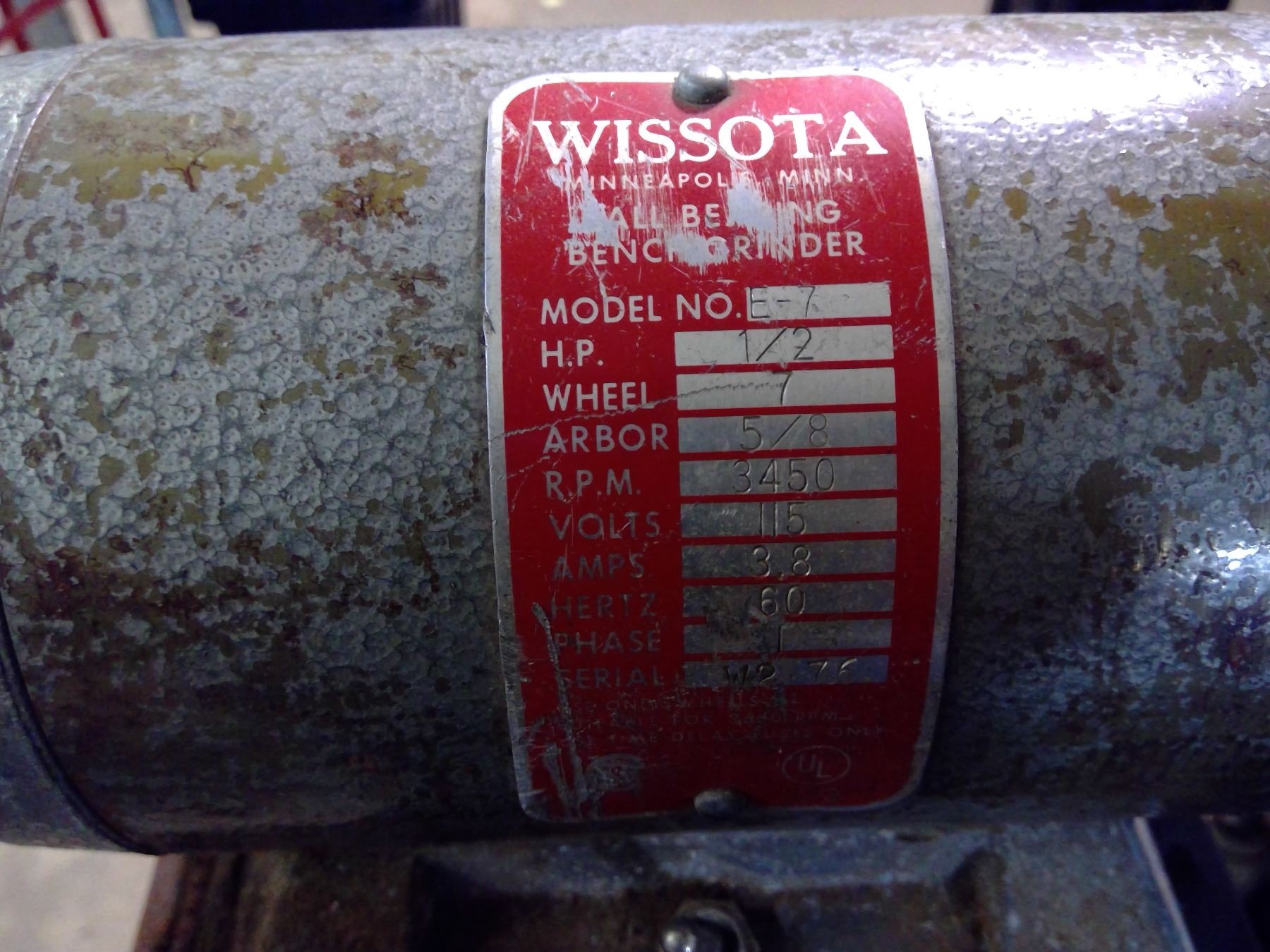 Wissota Bench Grinder on Stand - Model E7 1/2 HP - Untested