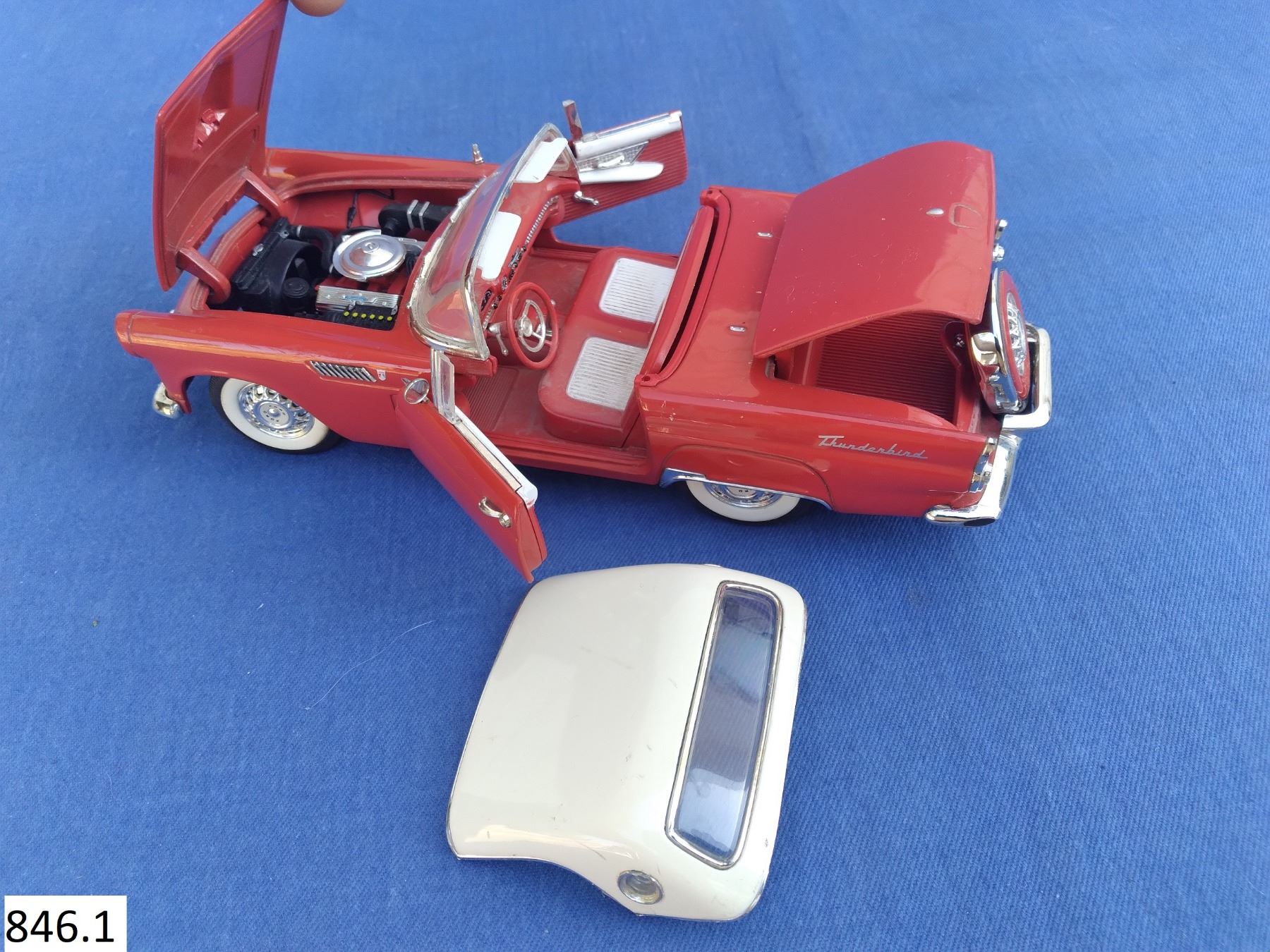 Wix Filters promo diecast 1956 Ford Thunderbird. Approx. 7 1/2 inches long. Very detailed diecast vehicle including undercarriage, with opening doors, hood, trunk, and removeable hardtop.