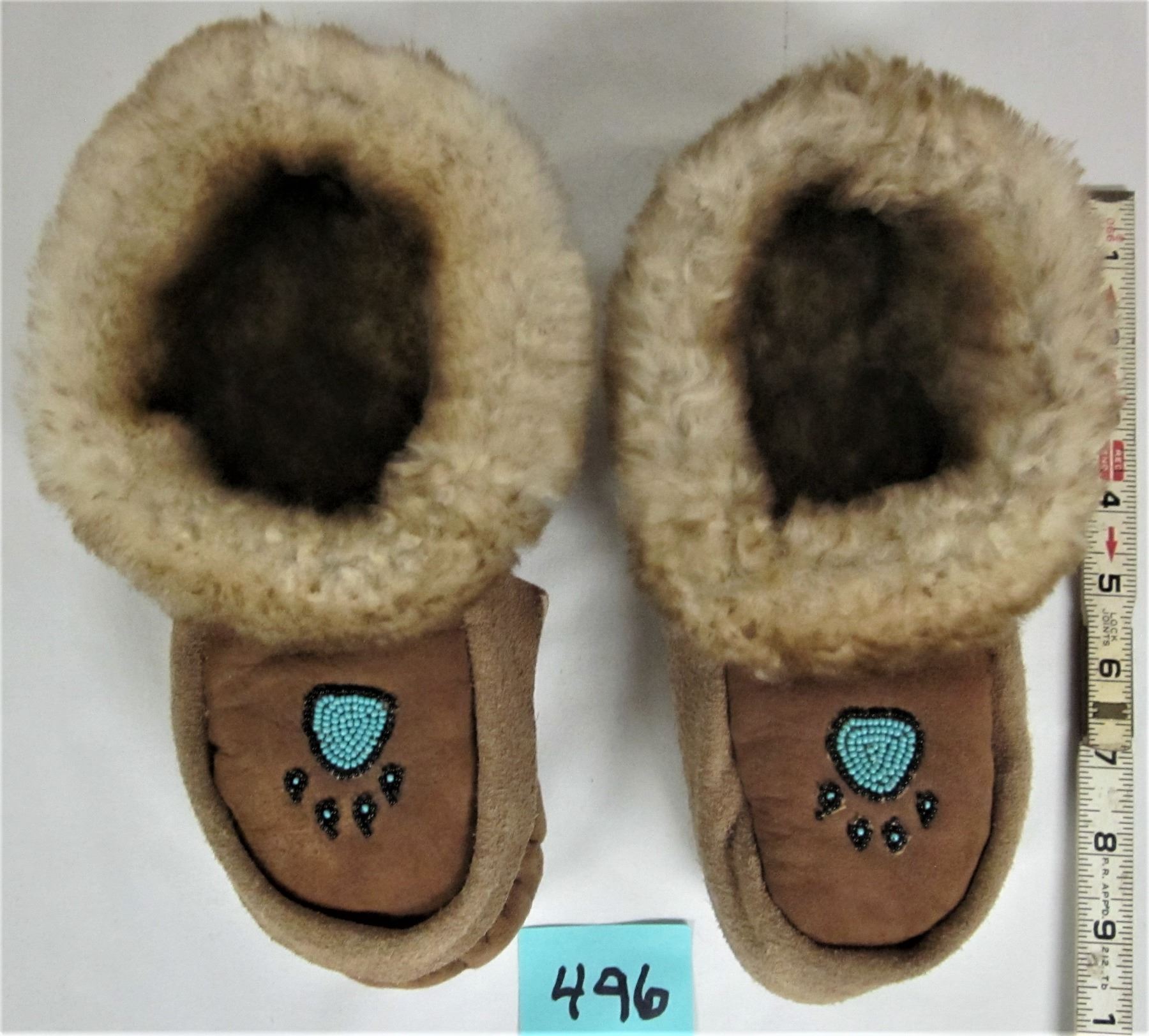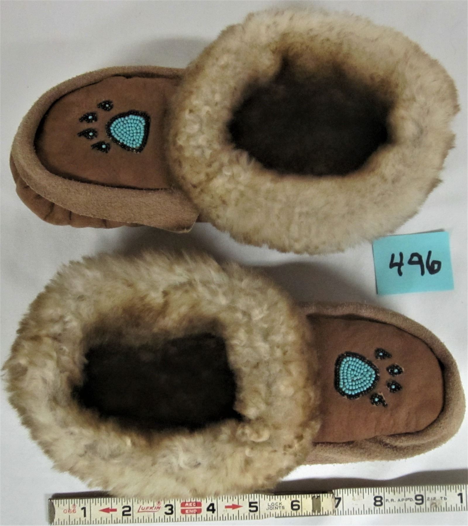 Women's size 9 sheepskin lined moccasins bear paw logos